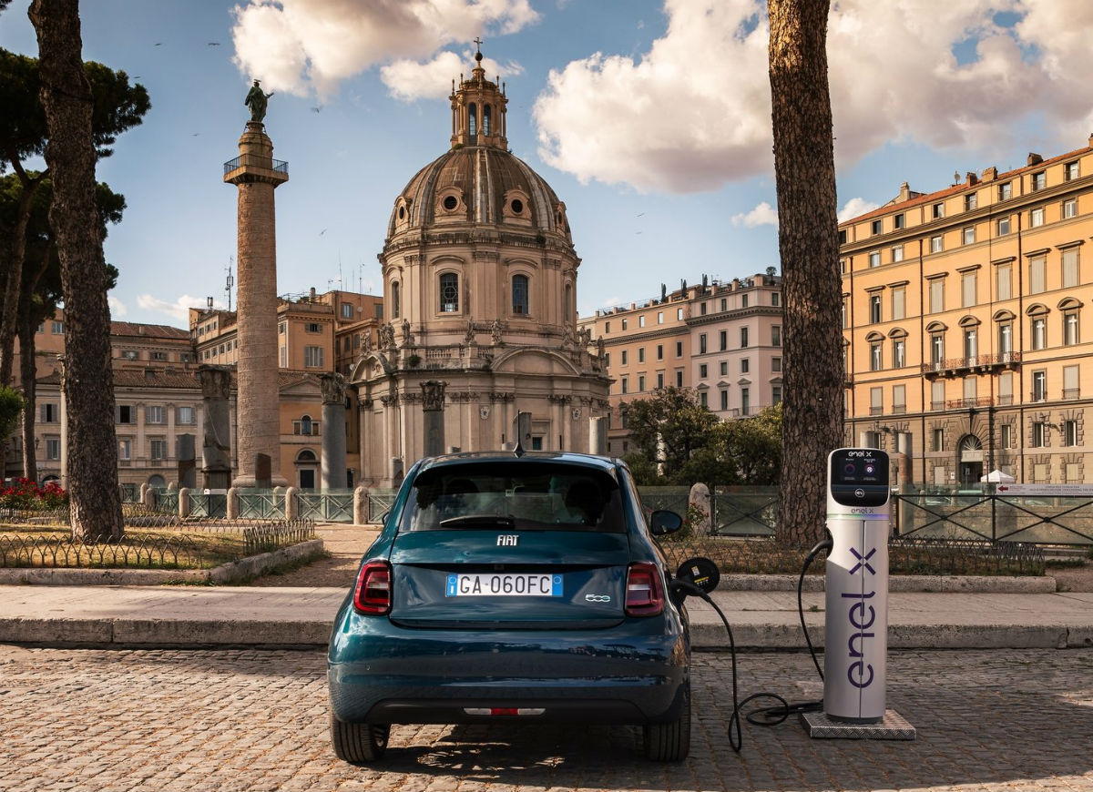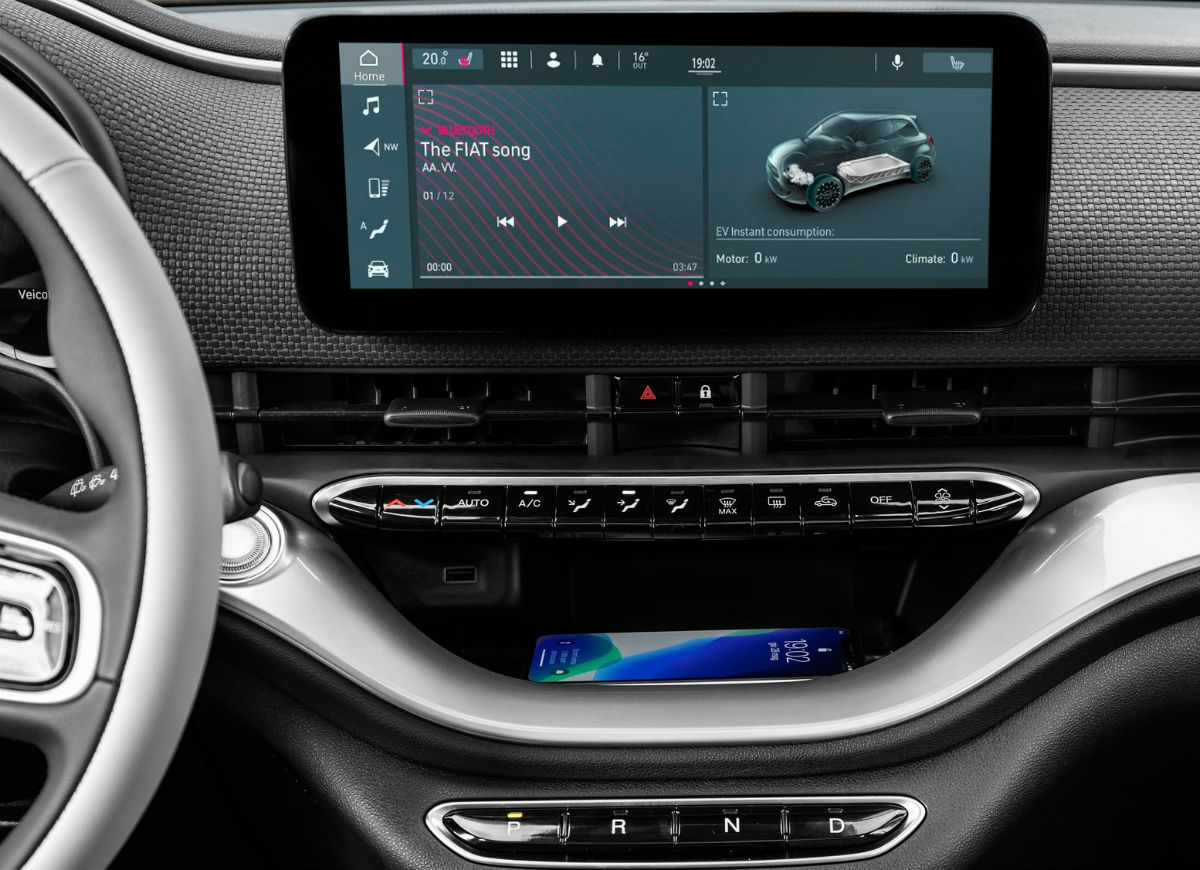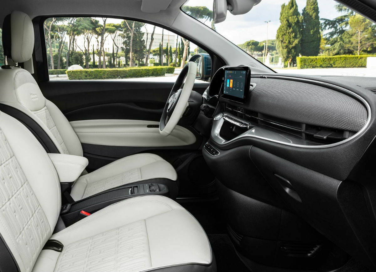 Para optimizar el tiempo de carga, esta nueva generación del cinquecento permite una carga rápida de corriente contínua (CC) de hasta 85 kW, para recargar la batería muy rápidamente. En este caso lleva solo 5 minutos acumular suficiente reserva de energía para recorrer 50 kilómetros, más de lo necesario para el uso diario promedio. La carga rápida también puede reponer la batería al 80% en solo 35 minutos.