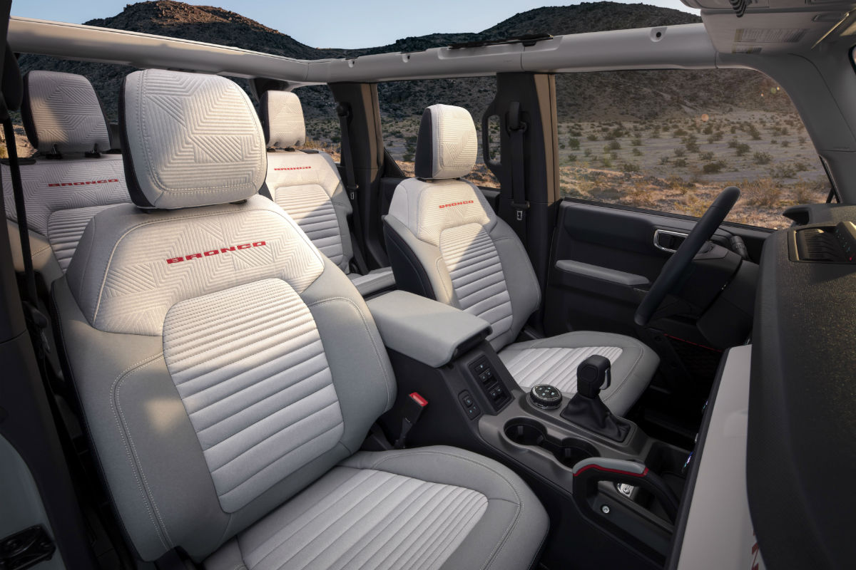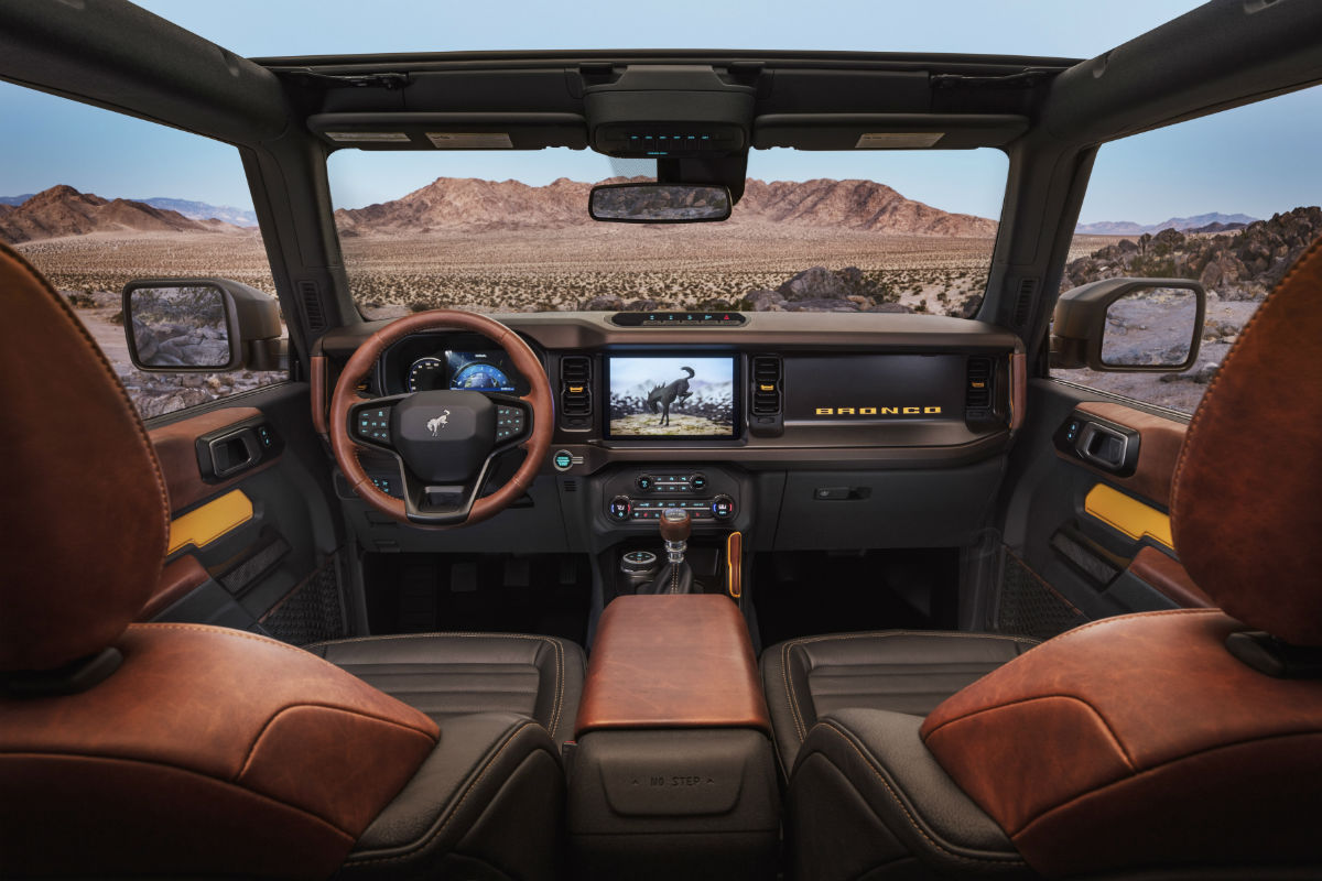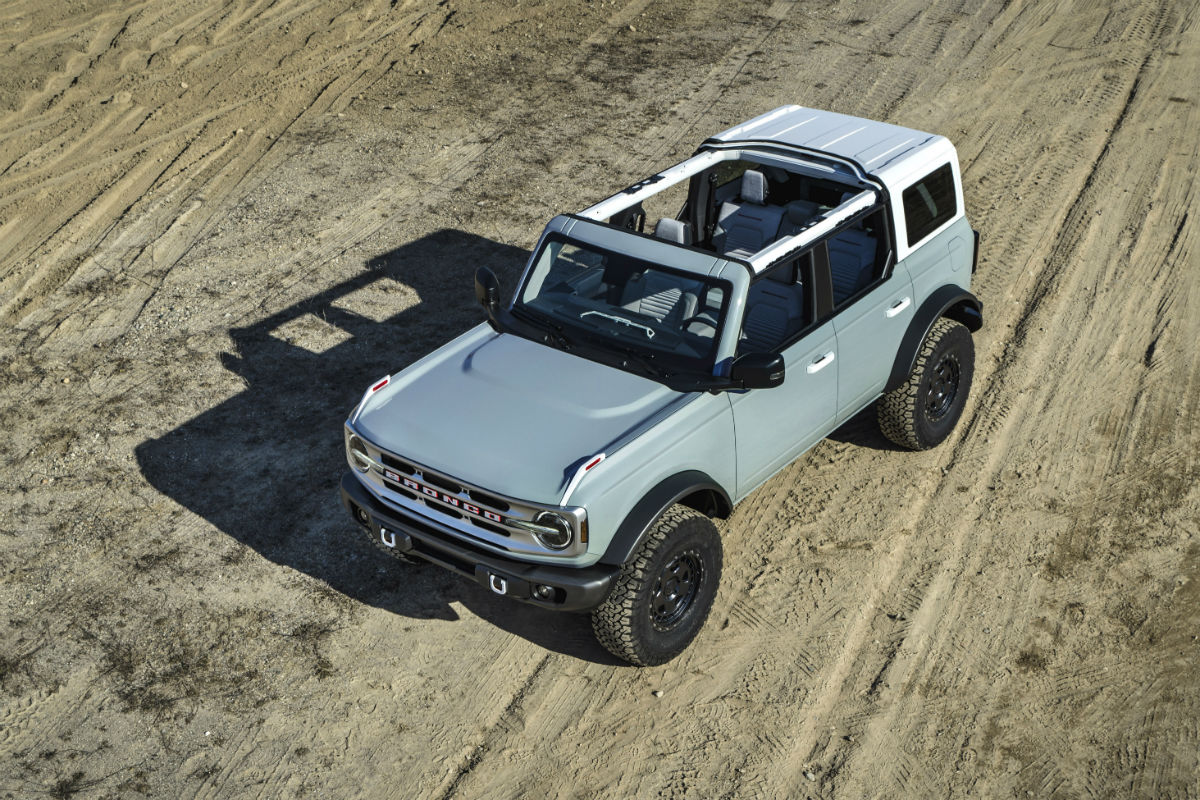 La Bronco retoma la senda del todo terreno nacido en 1964: es un SUV con tracción 4×4 y carrocería de dos puertas, con techo removible. Se trata de un competidor directo del Jeep Wrangler, aunque con una impronta característica en el modelo de Ford.