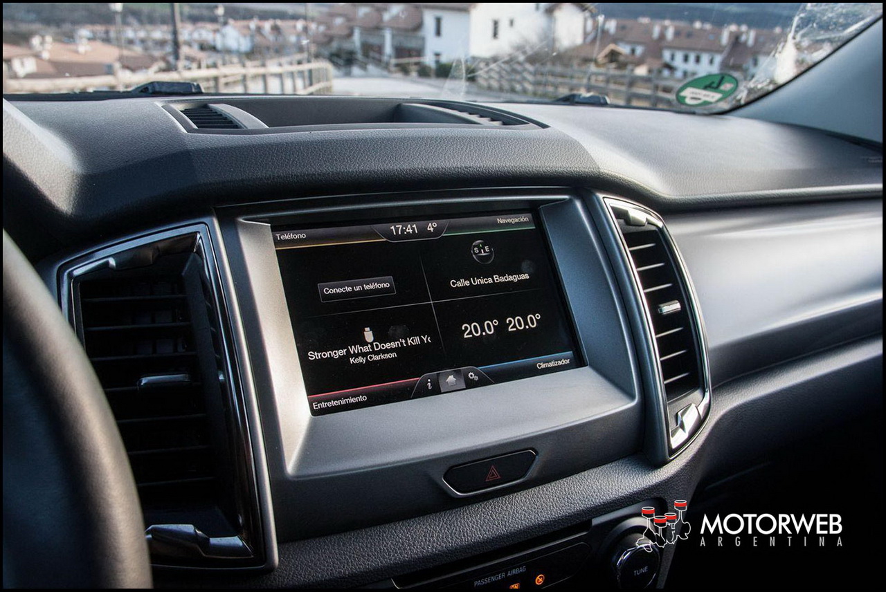 Puertas adentro, la nueva Ranger presenta en sus versiones XLT y Limited un panel completamente renovado. Su pantalla táctil ahora tiene 8 pulgadas, y permite acceder a los cuatro controles principales de habitabilidad compuestos por el teléfono móvil, el entretenimiento a bordo, la navegación y la temperatura mediante el sistema «SYNC MyFord Touch». Además, ahora la cámara de visión trasera proyecta todo lo que ocurre en la parte posterior del vehículo en este diaplay, permitiendo que el conductor pueda maniobrar con facilidad. Permite observar en dos ángulos, uno distante y otro a 90° para facilitar la visualización del enganche del remolque.