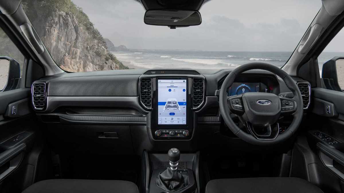 En cuanto al diseño interior, la nueva Ranger incorpora una gran pantalla vertical con Sync4, desde la que se pueden operar diversas funciones del vehículo. Sin embargo no deja de ofrecer comandos físicos para la climatización. Otro detalle que Ford ha confirmado es la presencia de dos sistemas diferentes de tracción 4×4, uno de ellos con función de acople automático.