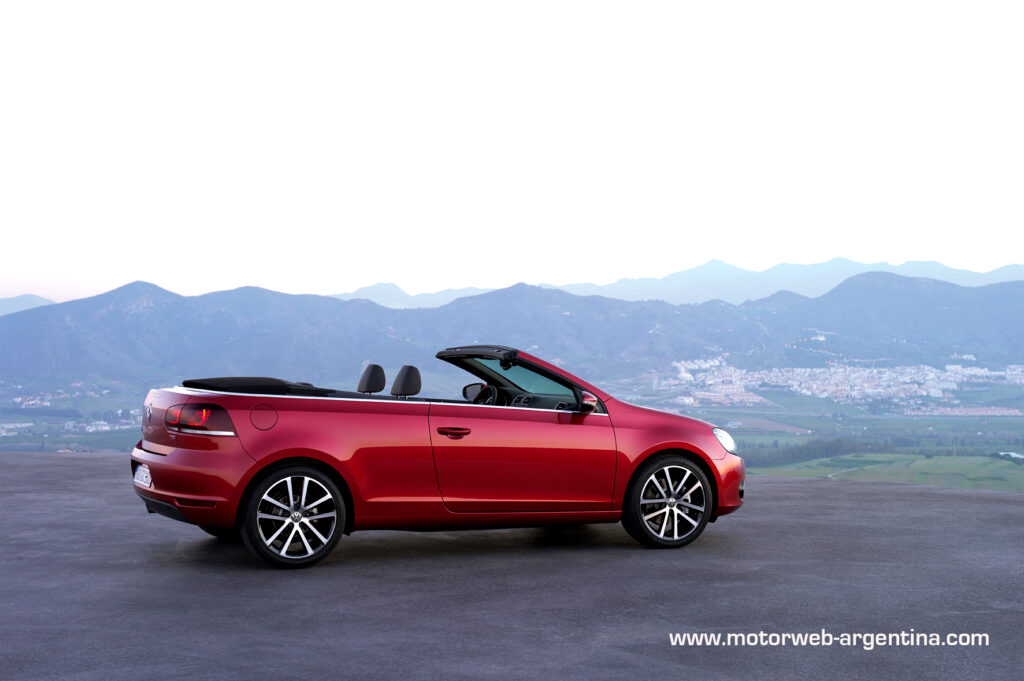 Es ahora que llega este Golf Cabrio, que llega a ocupar un lugar en la gama VW que muchos podrán pensar rivalizará con su primo hermano, el Eos, derivado también de la plataforma del Golf V. La diferencia sustancial con el Eos será que el Golf seguirá ofreciendo, como siempre lo hizo, una capota textil, mientras que el Eos ofrece un techo metálico retráctil. Lo que ha perdido en el tiempo es su característico arco fijo antivuelco, hoy desarrollado de un modo mucho más eficiente con un sistema retráctil en caso de necesitarlo. La capota del nuevo Golf Cabrio se pliega en el increíble tiempo de solo 9.5 segundos, todo un récord para este tipo de dispositivos.
