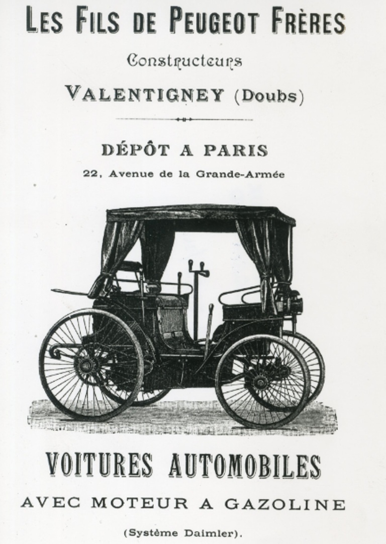Finalmente en 1891 la marca produjo su primer automóvil, el Tipo 3, con la ayuda de Gottlieb Daimler. Se trataba de un automóvil de cuatro plazas, con asientos orientados hacia el interior, que era capaz de alcanzar los 18 km/h. Por entonces la compañía era liderada por Armand y Eugene Peugeot, primos entre sí, aunque el segundo no confiaba en el mundo del automóvil.