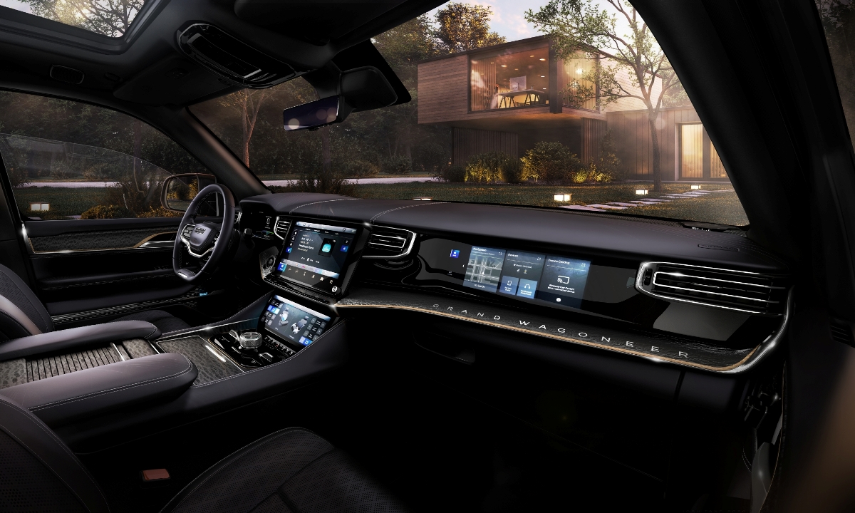 Haciendo honor a su nombre, el Grand Wagoneer Concept ofrece un enorme interior para siete personas gracias a sus confortables dos primeras filas con butacas independientes, y a una tercera fila de asientos para tres pasajeros (la primera vez que se ofrece en un Grand Wagoneer).