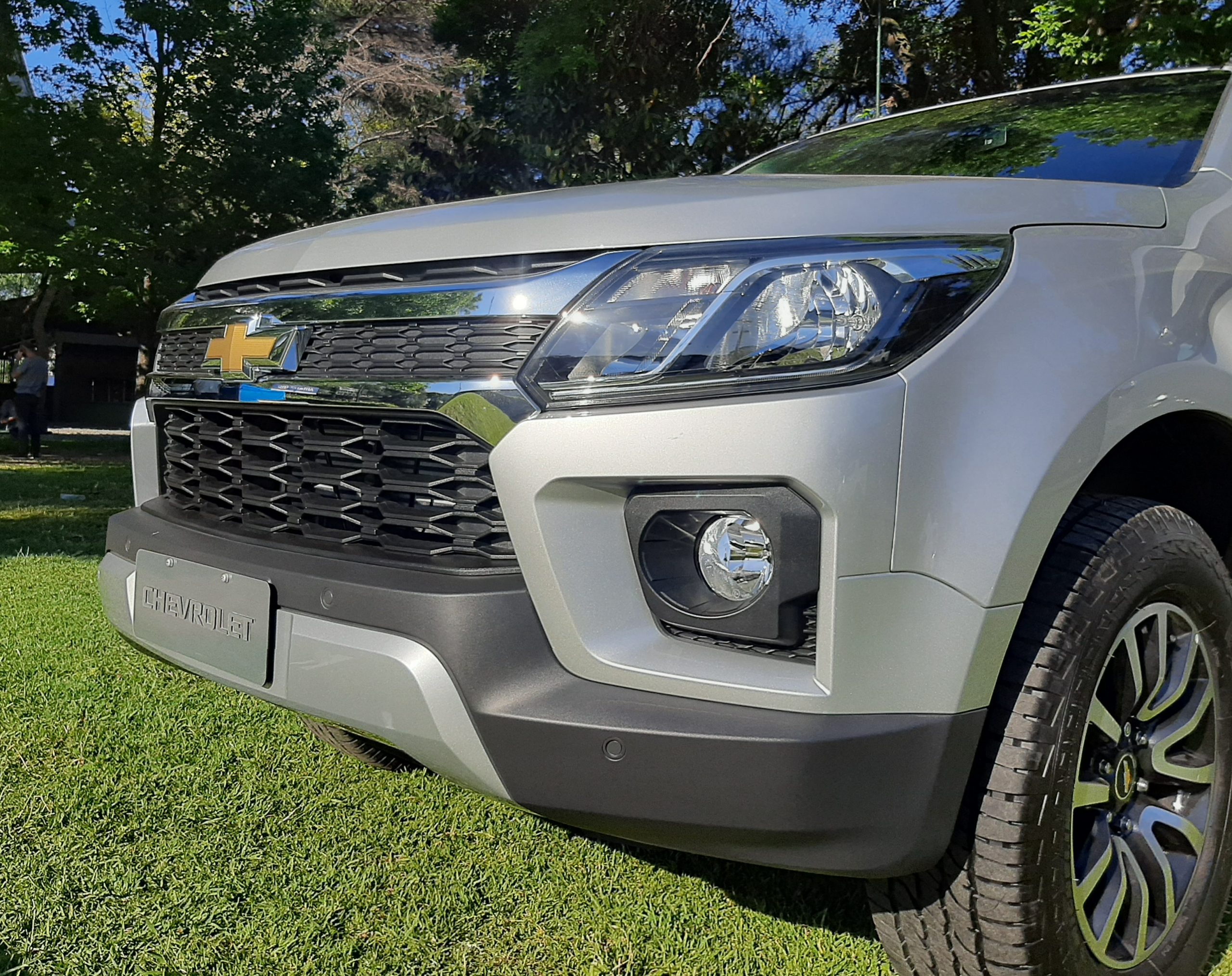 Tanto en la S10 High Country, como en Trailblazer, la nueva grilla frontal establece una imagen más deportiva, pero a la vez más funcional, ya que Chevrolet anuncia una mejora en el ángulo de ataque, que pasa de 27 a 29°. El moño dorado de la marca aparece en la zona inferior, sobre el lado izquierdo.