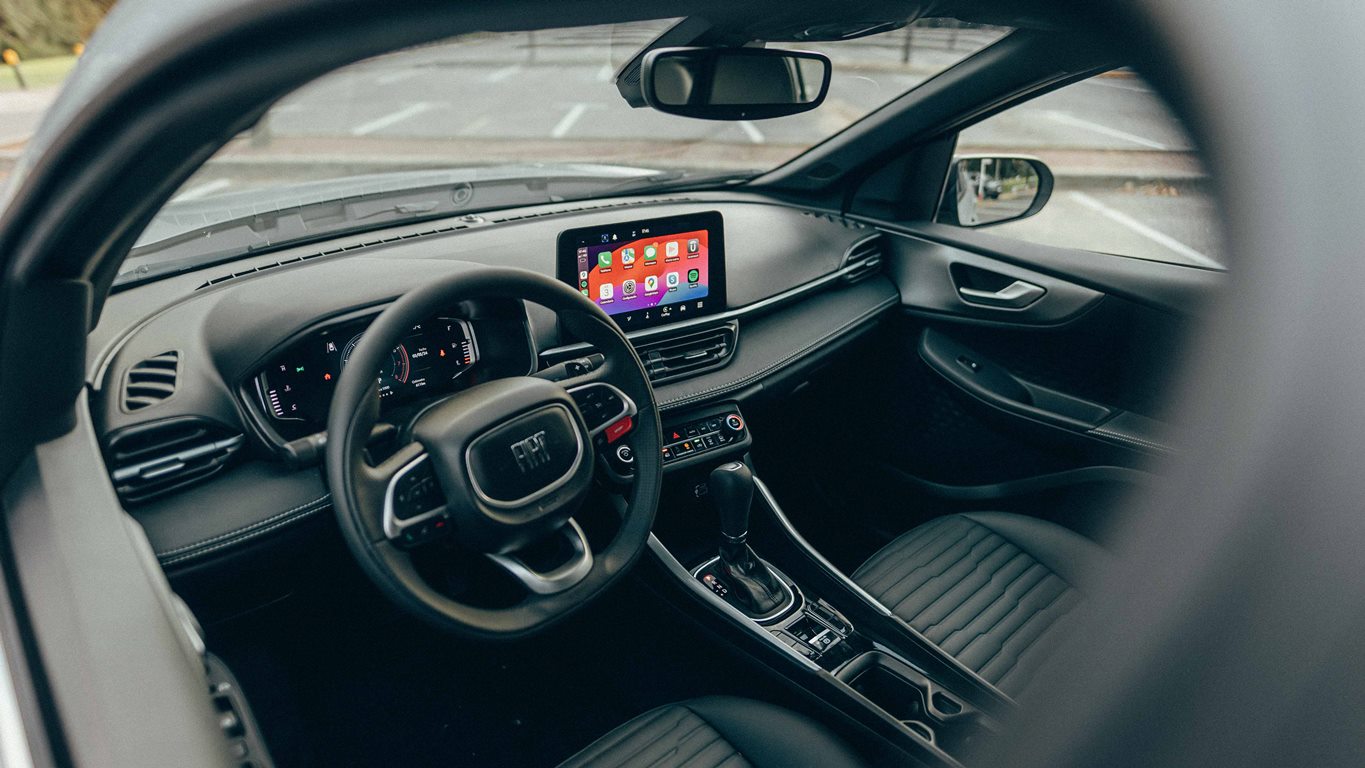 Las dos variantes del Fastback están equipadas con una central multimedia Uconnect de 10,1 pulgadas con GPS, además de Apple CarPlay y Android Auto, con conectividad de forma inalámbrica. El modelo también cuenta con un cargador wireless para teléfonos celulares con salida de aire acondicionado dedicada en esta región para refrigerar el dispositivo móvil, función TC+ que garantiza un mejor frenado en condiciones de baja adherencia, control de estabilidad, cámara de retroceso y nuevo climatizador automático digital que tiene salida a las plazas traseras para mayor confort térmico.