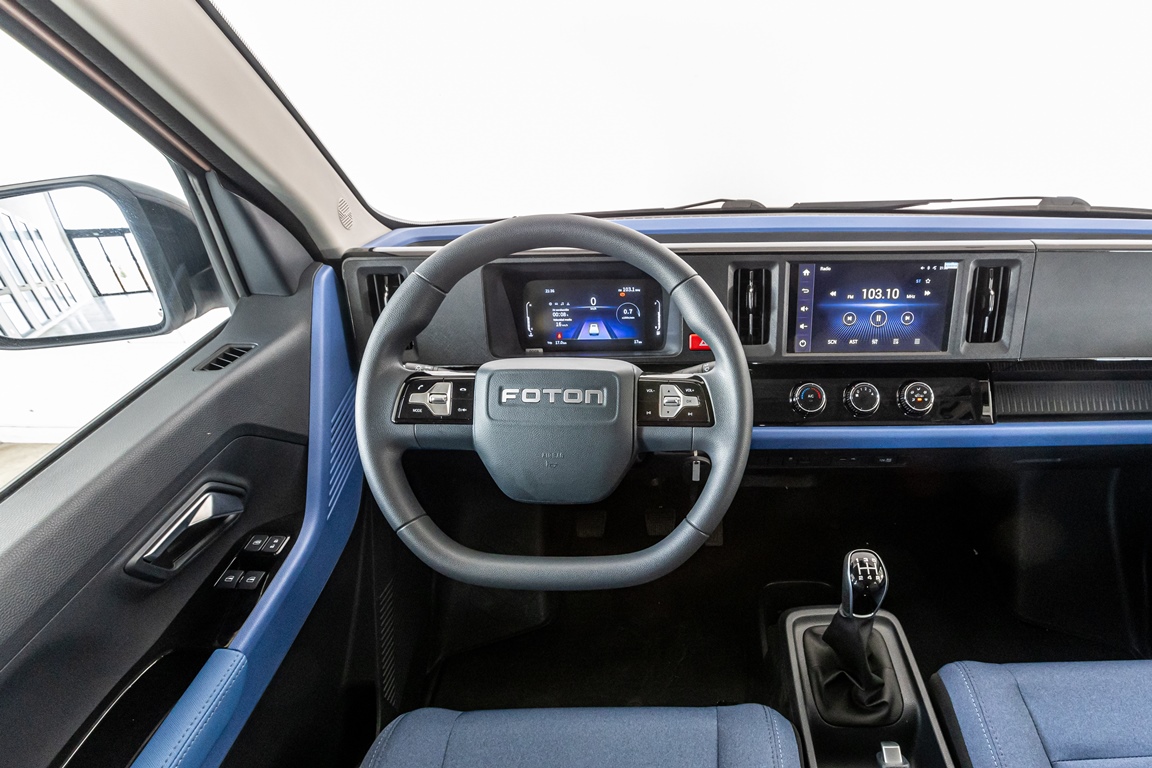 En el interior, a diferencia de otros minitrucks Foton destaca la incorporación de asientos ergonómicos, materiales de calidad, doble burlete en puertas, entre otros detalles, que se agregan al aire acondicionado, levantavidrios eléctricos, cierre centralizado con comando a distancia, columna de dirección regulable, luces LED (DRL, faros delanteros y giros), faros antiniebla, llantas de 14 pulgadas y espejos eléctricos calefaccionados.