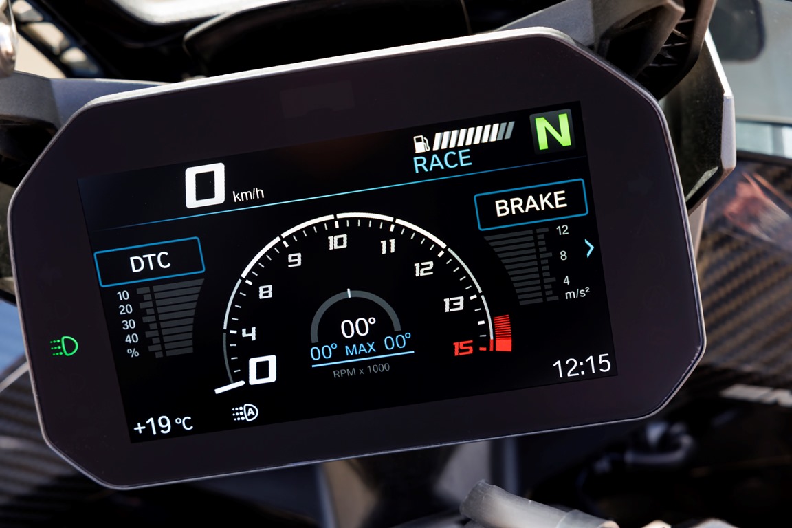 Además incluye frenos M con doble disco de 320 mm (desarrollados con la experiencia adquirida por BMW en el Campeonato del Mundo de Superbikes), horquilla invertida asociada al control dinámico de amortiguación (DCC), silenciador trasero de titanio con tapa de carbono, manillar tubular de aluminio orientado hacia el frente, amortiguador de dirección ajustable, Brake Slide Assist (el cual permitederrapar en las curvas con deslizamientos constantes), Launch control, Pit Lane Limiter, asistente de cambio PRO para subir y bajar marchas sin embrague, Control Dinámico de Tracción con función wheelie, embrague antirrebote, control de freno motor (MSR), ABS Race (más ligero y con respuesta mejorada), asiento M Sport y faro LED Headlight Pro adaptativo, entre otros.