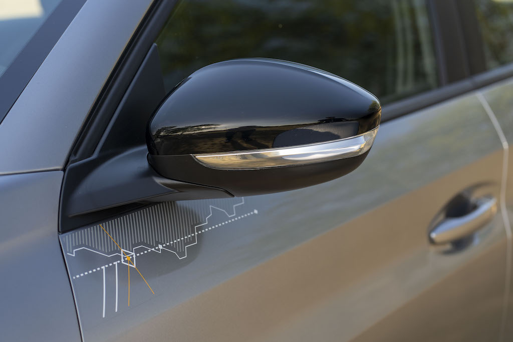 En su interior, presenta el Display de conductor 3D, asientos de tela y alcántara con costuras contrastantes. Además, paneles de puerta con la misma temática, alfombras y cargador inductivo de celular.