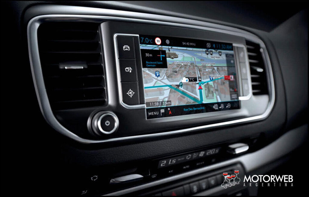 Este modelo inaugura una nueva pantalla táctil capacitiva de 7’’, además del sistema multimedia y propone una navegación 3D conectada, activada por reconocimiento por voz o mediante la pantalla táctil. Peugeot ConnectNav integra también la función MirrorScreen para disfrutar de las aplicaciones de su smartphone en la pantalla táctil de 7’’ del Peugeot Traveller con total seguridad. El MirrorScreen se propone con las dos tecnologías Apple CarPlay y Mirrorlink para garantizar un abanico más amplio de smartphones compatibles.