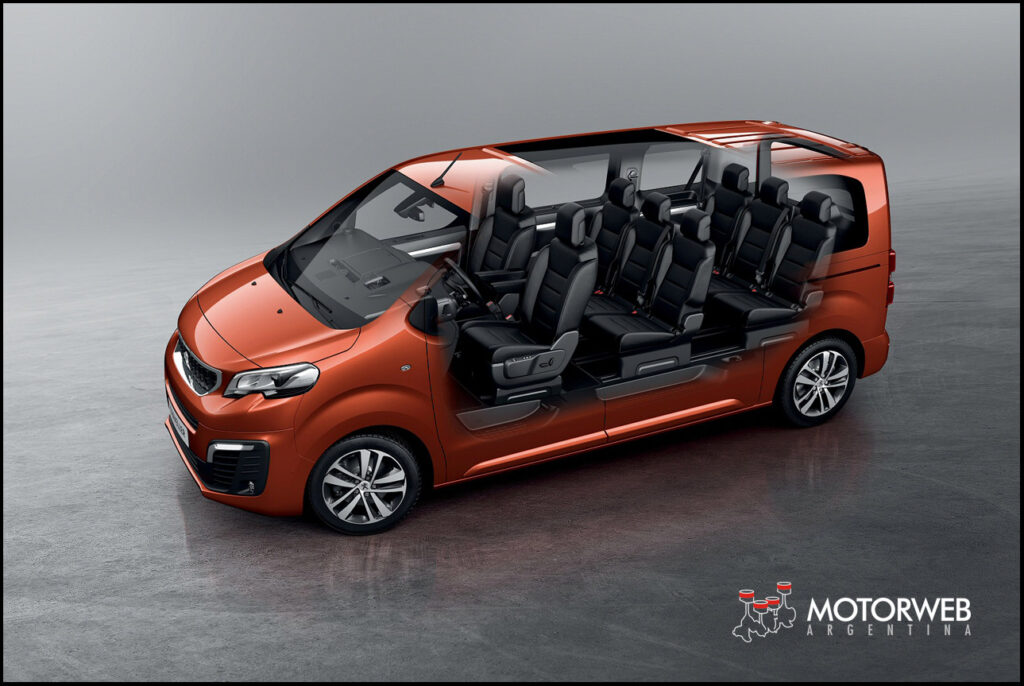 Se trata de un vehículo de 4.90 metros de largo y 1.90 metros de alto total, que puede trasportar entre dos y 8 personas, a elección de la configuración que haga el usuario del espacio interior. De gran modularidad y con el foto puesto en el confort y la conveniencia para los largos viajes, el Traveller propone una cantidad de equipamientos de tecnología, confort y seguridad de última generación, poco frecuentes en el segmento: dobles puertas laterales corredizas motorizadas, lectura de los carteles viales con recomendación de límite de velocidad, apertura de luneta trasera independiente y techo vidriado y la nueva navegación conectada, llamada «VisioPark1», con cámara de marcha atrás con visión trasera aérea 180° y zoom para vista trasera, butacas revestidas en cuero, respaldos inclinables individualmente en cada una de las 8 butacas, climatización tri-zona con función difusión suave, cortina parasol en fila 2, bandeja oculta equipaje dos techos vidriados separados, parabrisas acústico (de mayor espesor y lamina interior especifica), tomas de 12V distribuidos en el habitáculo, un toma 230 V y un toma USB permiten cargar cualquier dispositivo nómade.