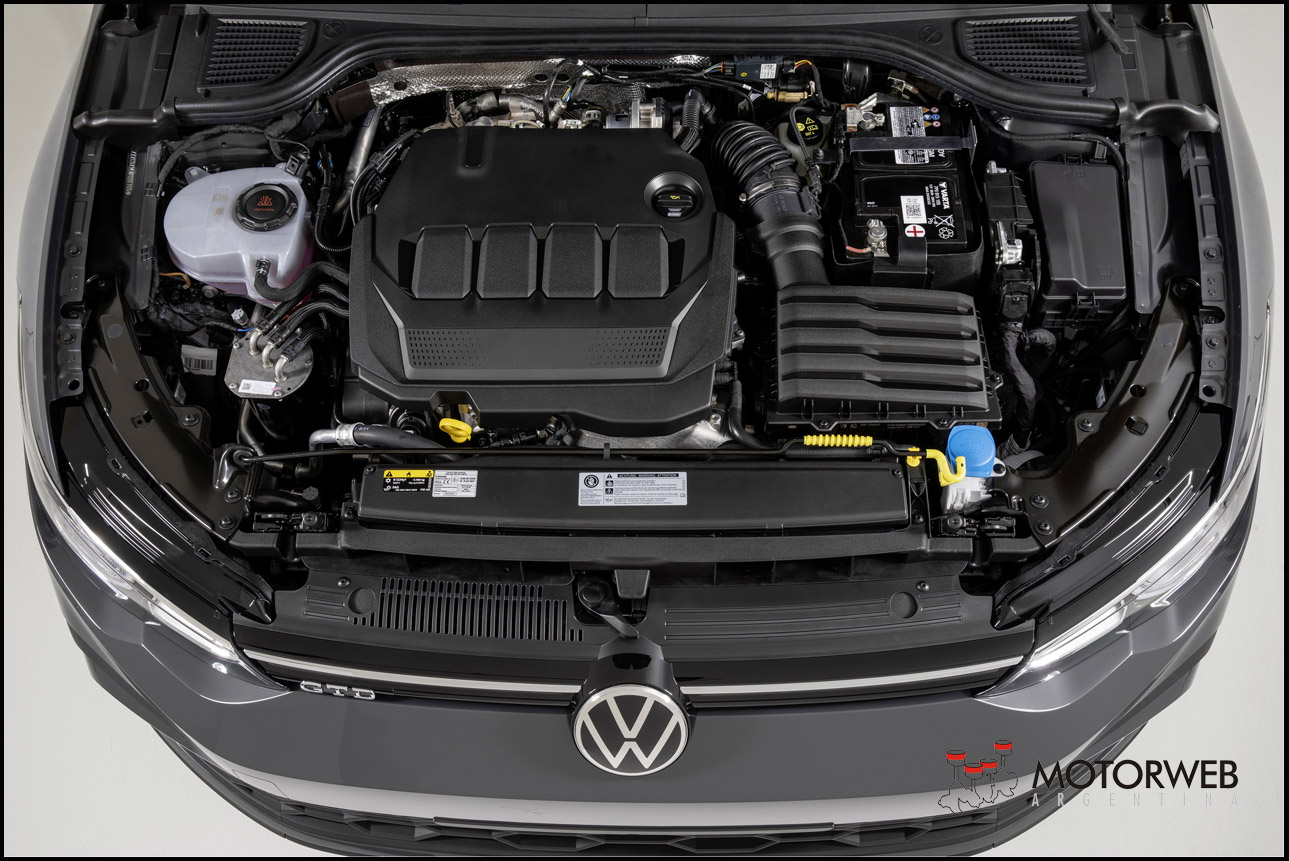 GTI con motor turbo de gasolina. El nuevo Golf GTI cuenta con un motor turbo de inyección directa de 20 litros (EA888 evo4) de 180 kW (245 CV) de potencia. El par máximo es de 370 Nm. El motor de cuatro cilindros está acoplado de serie a una caja de cambios manual de 6 marchas (MQ350). Opcionalmente, está disponible un cambio automático de doble embrague DSG de 7 marchas (DSG como DQ381).