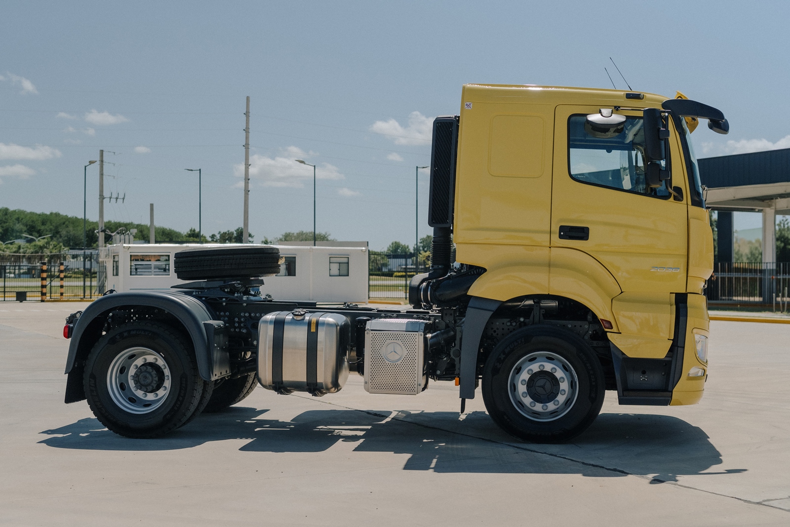 Con un chasis similar al del Actros, el Axor lleva el ADN de robustez de los camiones extrapesados Mercedes-Benz. Además, destaca por su mayor capacidad de carga, con una PBTC (Peso Bruto Total Combinado) de hasta 62 toneladas. La suspensión del camión es metálica en las versiones 2038 y neumática con un eje elevable en la versión 6×2, configuraciones reconocidas en el mercado por su resistencia y durabilidad.