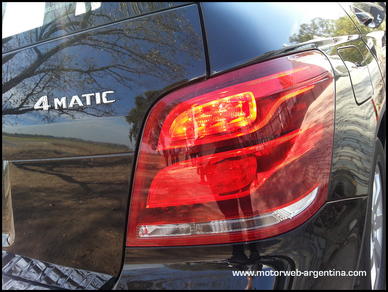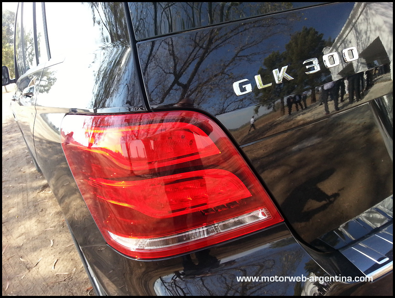 Los paragolpes son idénticos en todos los modelos, sin la distinción que existía hasta ahora entre los paquetes para ruta y para todo terreno. Por debajo de los nuevos faros se montan en todos los casos las luces diurnas de diodos luminosos de serie, integradas en un perfil cromado. La parrilla del radiador con la estrella central asume los rasgos de diseño de todos los turismos actuales. La parrilla de color plata, realzada con insertos cromados. Los faros principales suponen una nueva interpretación del diseño típico de los grupos luminosos de Mercedes. En Intelligent Light System ILS de serie consta de la unidad de proyección, un reflector, la antorcha con elementos de diodos luminosos y fibra óptica para la luz de posición y, por encima, intermitentes con diodos luminosos visibles. En la vista lateral llaman especialmente la atención las barras longitudinales en el techo, de diseño completamente nuevo. El paragolpes trasero acentúa la anchura del vehículo y confiere un aire deportivo y distinguido a la zaga de la GLK en combinación con los diferenciados grupos ópticos traseros. En la vista por detrás destacan especialmente la nueva forma de la protección de los bajos con acabado cromado, y los embellecedores cromados de serie en las salidas de escape. Los diseñadores han modificado completamente los grupos ópticos traseros, tanto en su forma como en su funcionalidad. Gracias al empleo de diodos luminosos y fibra óptica, la zaga del GLK brilla con un diseño nocturno característico y singular, acentuado por la nueva iluminación de la matrícula de LED.
