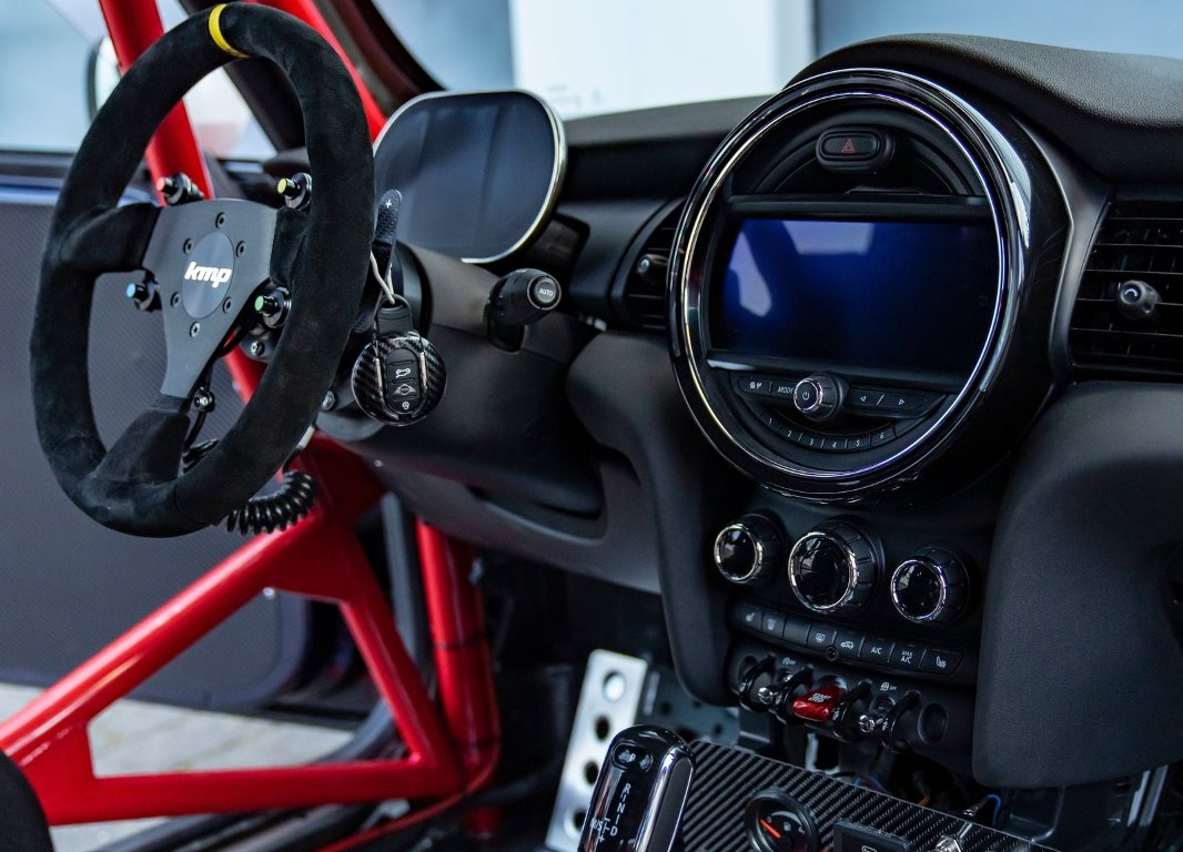 Para esta competencia se adaptó un Mini John Cooper Works de calle a las necesidades del reglamento técnico, junto a otras mejoras para optimizar su rendimiento en la complicada pista alemana.