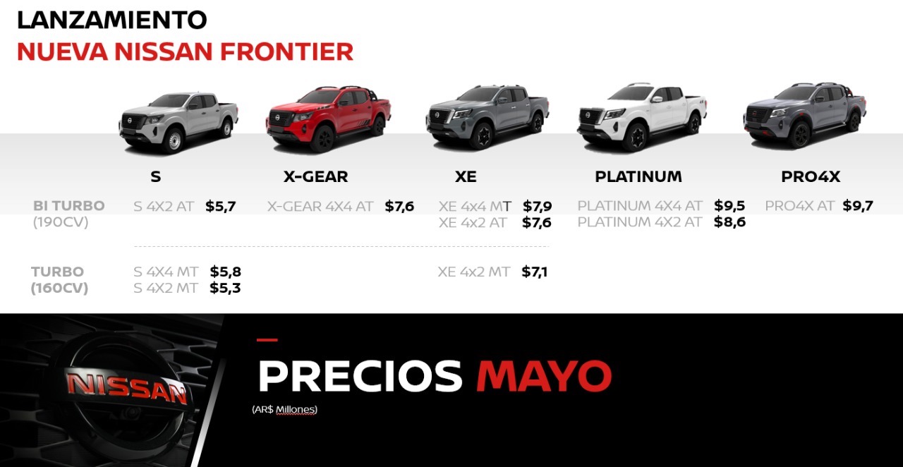 Los precios oficializados por Nissan y que correrán a partir de mayo tienen arrancan en 5.3 millones de pesos, y van hasta los 9.7 millones en la tope de gama, y nueva, PRO-4X.