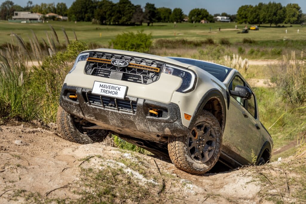 La versión Tremor es la gran novedad de la Nueva Ford Maverick que ya desde su diseño exterior expresa su personalidad. Está equipada con un paquete off-road que potencia su desempeño fuera del camino y que incluye atributos exclusivos como: suspensión de alto rendimiento con amortiguadores y resortes reforzados (delanteros y traseros) con topes hidráulicos que mejoran la capacidad de absorción en terrenos irregulares, despeje del suelo 20 mm mayor a las demás versiones y ángulo de ataque 10° mayor, para sortear obstáculos con mayor facilidad.