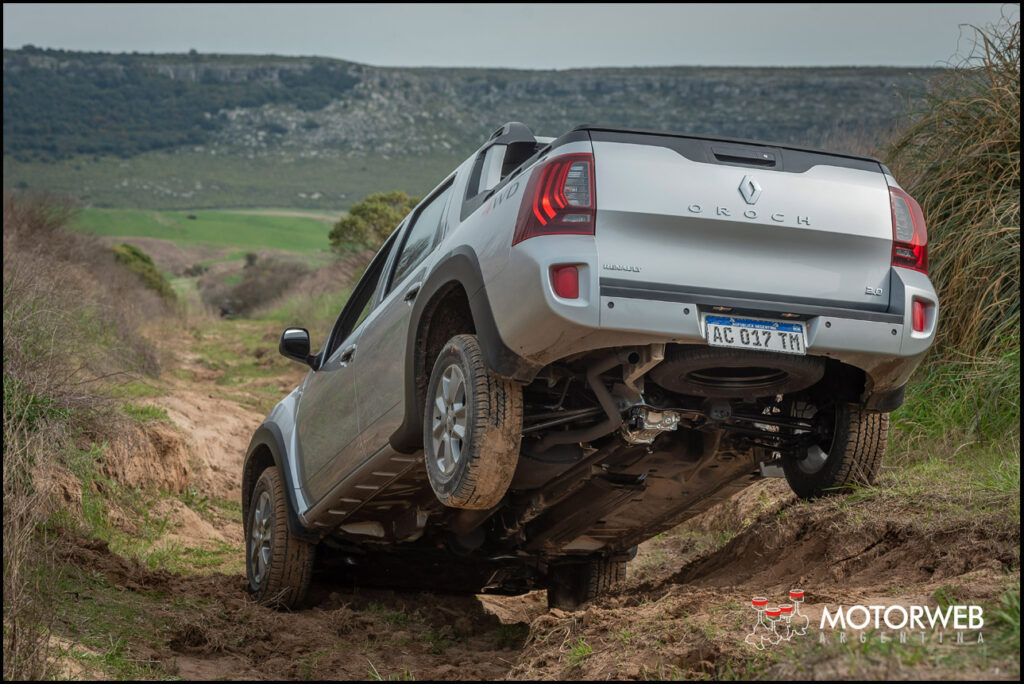 La adaptación de la doble tracción en la pickup Oroch demandó algunas novedades. La caja de velocidades cuenta con una nueva calibración que acorta la primera marcha para mejorar la capacidad en todo tipo de terrenos. Tiene tres modos de tracción disponibles manejables a través de un sencillo comando giratorio ubicado en la baja de la consola central: En Modo 2WD, el vehículo opera con tracción únicamente en las ruedas delanteras. Este modo es recomendado para circular en caminos con buenas condiciones y permite optimizar el consumo.