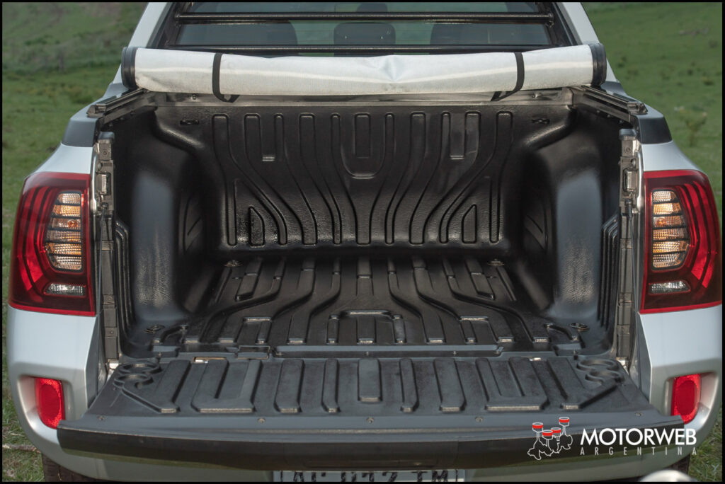 La caja de carga tiene un volumen de 683 litros, más que cualquier camioneta compacta a la venta en el país. Son 1.175 mm de ancho y 1.350 mm de profundidad. Para ayudar en el transporte de carga hay ocho anillos de sujeción (que soportan 50 kg cada uno) que se pueden plegar cuando no están en uso. Posee un cobertor plástico de serie y la tapa de la caja soporta hasta 80 kg. La capacidad de carga total es de 650 kg.