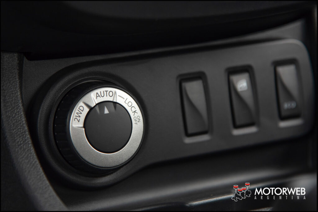 El Modo AUTO deja que el vehículo distribuya automáticamente y dependiendo de la necesidad, la fuerza entre el eje delantero y trasero. Se recomienda su utilización en caminos de ruta, terrenos adversos o húmedos, y en situaciones de carga o remolque. El modo LOCK distribuye la fuerza equitativamente entre el eje delantero y trasero manteniendo un torque permanente con el objetivo de maximizar la capacidad todo terreno. Este modo se recomienda para circular en todo tipo de terrenos extremos o situaciones donde el vehículo pierde la adherencia al suelo (ripio, barro, nieve, escarcha, arena, etc). El sistema cambia automáticamente a “AUTO” cuando la velocidad del vehículo supera los 40 km/h. También se proporcionan testigos en el tablero indicando cuál de los diferentes modos están activados.