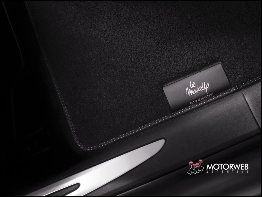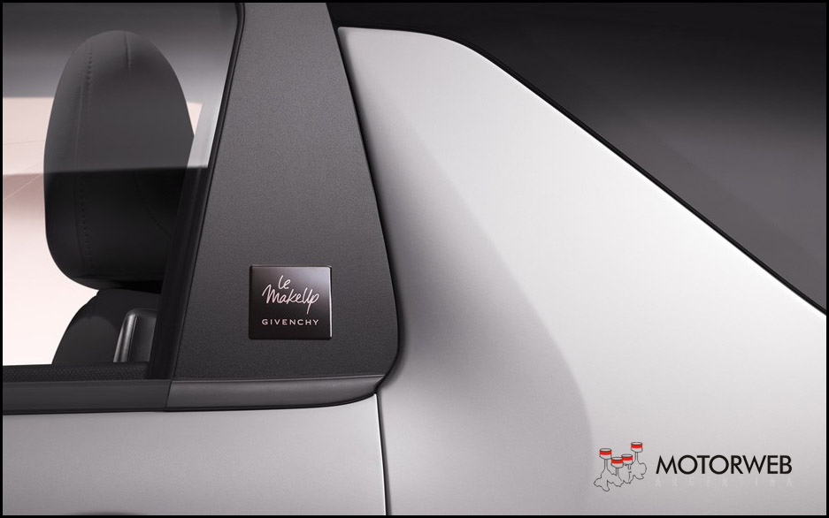 Desde el exterior, se destaca por el inédito acabado que le brinda su color blanco perla texturado con una terminación mate. El color morado «Whisper», elegido para contrastar en elementos como el techo, los espejos retrovisores y los centros de rueda, conforma una asociación elegante y diferente. El logo GIVENCHY LE MAKEUP, en aluminio, recuerda –en la base de los robustos parantes centrales–, que se trata de una serie personalizada.