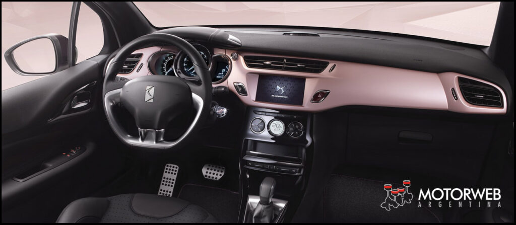 El interior resume el toque propio de la Gama 2018 DS 3: volante de cuero con apliques de aluminio, butacas delanteras de perfil deportivo y con calefacción infdividual, sistema de navegación con GPS y pantalla táctil de 7” con Mirror Screen, limitador y regulador de velocidad, entre lo mas destacado.