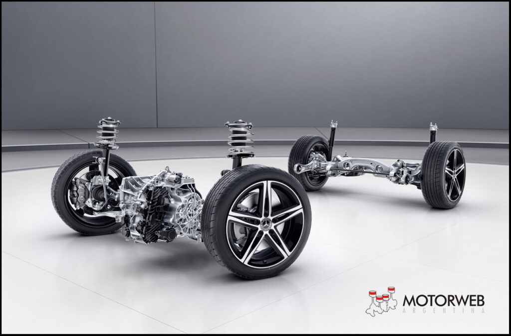 Las transmisiones son cajas manuales de 6 relaciones o automáticas de 7 marchas de doble embrague. De esta hay dos variantes, una para el A250 que es la misma 7G-DCT que ya usaba el anterior A250, y la otra, es nueva, desarrollada por Getrag, que es más liviana y acorde al menor torque de los A200 y A180d. La tracción es delantera, pero hay opción de equiparlo con traccion integral «4matic». La suspension, según la variante, puede ser independiente en las cuatro ruedas con esquema McPherson adelante y con paralelogramos deformables atrás para el Clase A más potente, pero para las versiones mas tranquilas y básicas, se recurre al esquema trasero de barra de torsión simple.