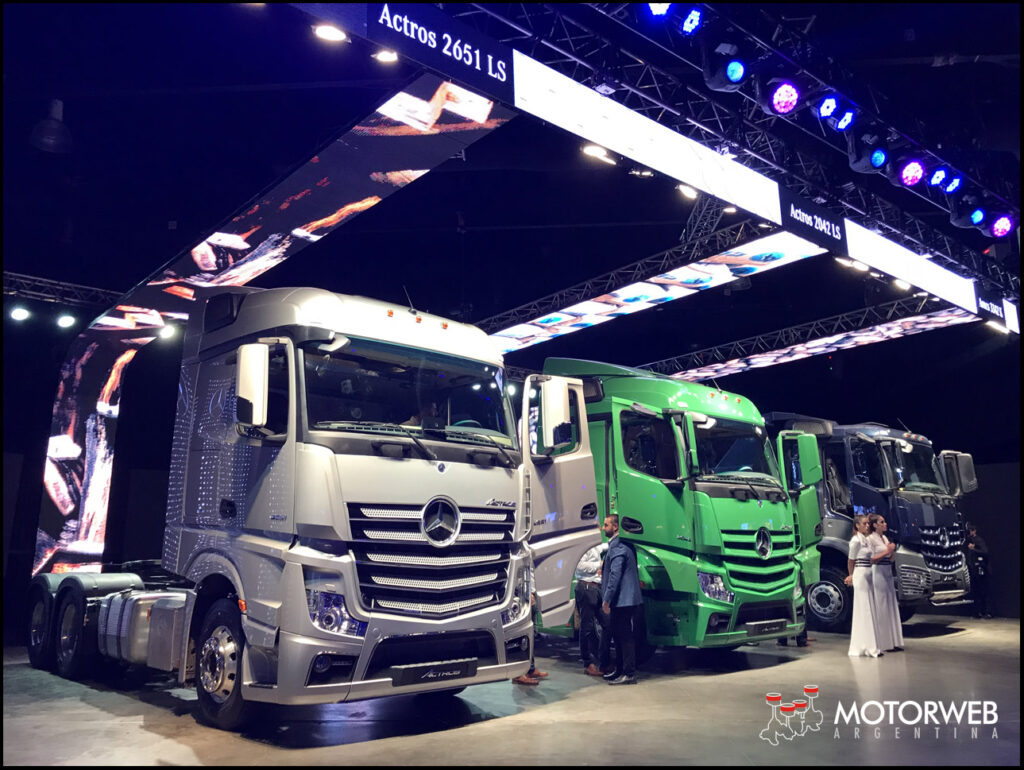 La nueva línea Actros, principalmente para transporte de larga distancia, cuenta con los modelos 2042 y 2048 en las versiones 4×2 tractores y chasis para acoplado con cargas hasta 45 Tns. También está presente el Actros 2636, un vehículo 6×2 liviano para transporte de combustible y carga peligrosa en general. Versiones para cargas superiores a 45 Tns, como el Actros 2645, un nuevo modelo 6×2 tractor para semirremolques de hasta 55,5 Tns., o 60 Tns. en la modalidad de Bitrén de 7 ejes. Finalmente en 6×4, representado por el Actros 2651, pensado para arrastrar un Bitrén de 75 Tns. La nueva familia Arocs entre las versiones disponibles encontramos el 3342, un camión 6×4 para montar cajas volcadoras de 17 m3. En 8×4 tenemos 2 versiones, un Arocs 4136, con doble toma de fuerza, que permite montar una amplia gama de carrocerías, como por ejemplo un trompo hormigonero de 10 m3, una caja volcadora o una grúa. El Arocs 4845, también 8×4, admite una capacidad de carga máxima sobre el chasis de 48 Tns. y cajas volcadoras de 23 m3.