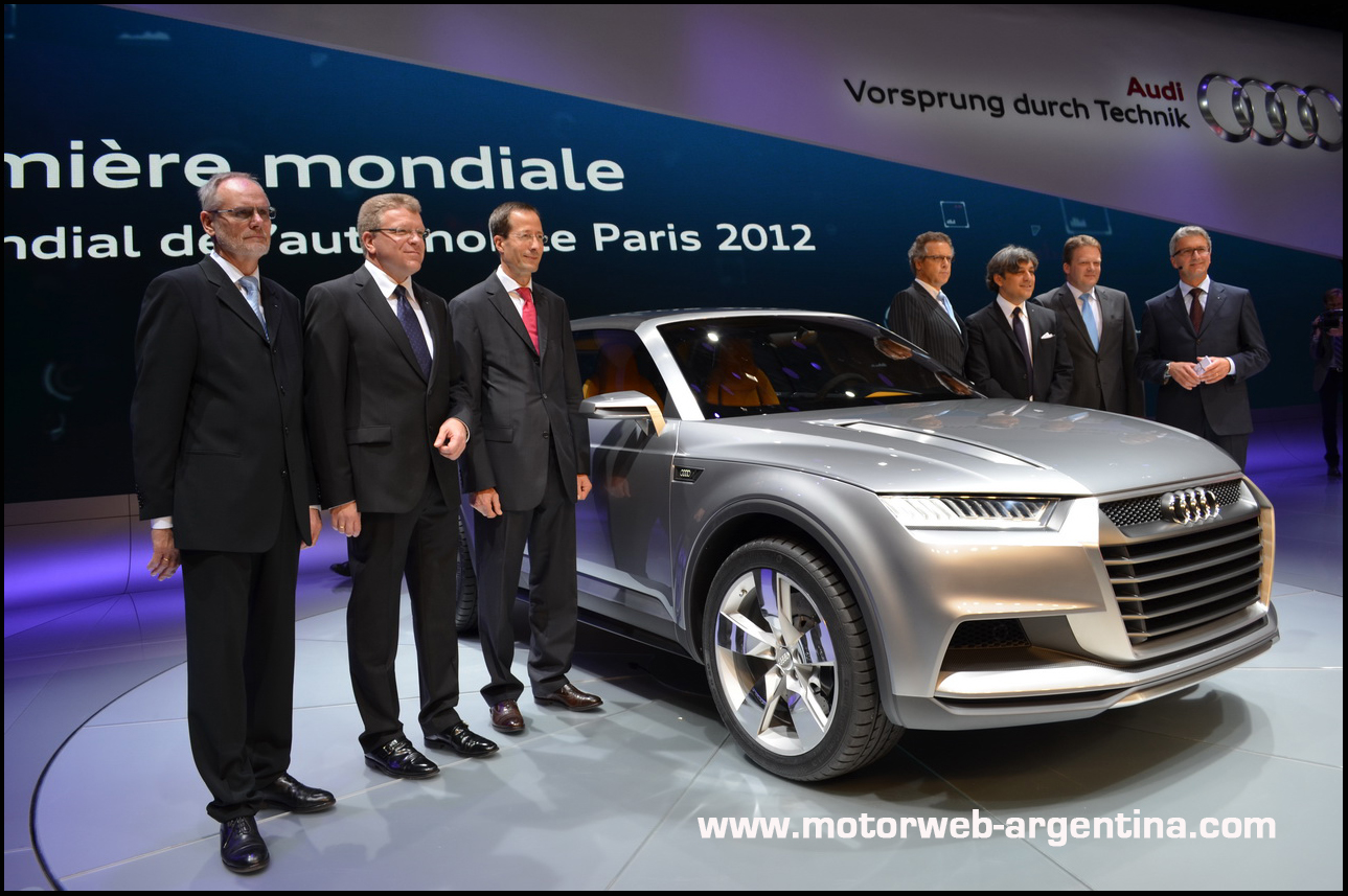 2012-09-27 Salon Paris_0151 copyEXCLUSIVO DESDE PARIS- Audi va de mayor a menor en el rubro de los Sport-Utilities. Primero fue el lujoso y enorme Q7. Establecida la referencia de mercado y la imagen, crearon la Q5, un talle menos. Y siguieron hace poco con el Q3, de próxima aparición en nuestro mercado. Ahora aparece el Concept CROSSLANE, que anuncia que la «escalera» de SUVs Audi continua y avanza hacia nuevas formas y tecnologías.