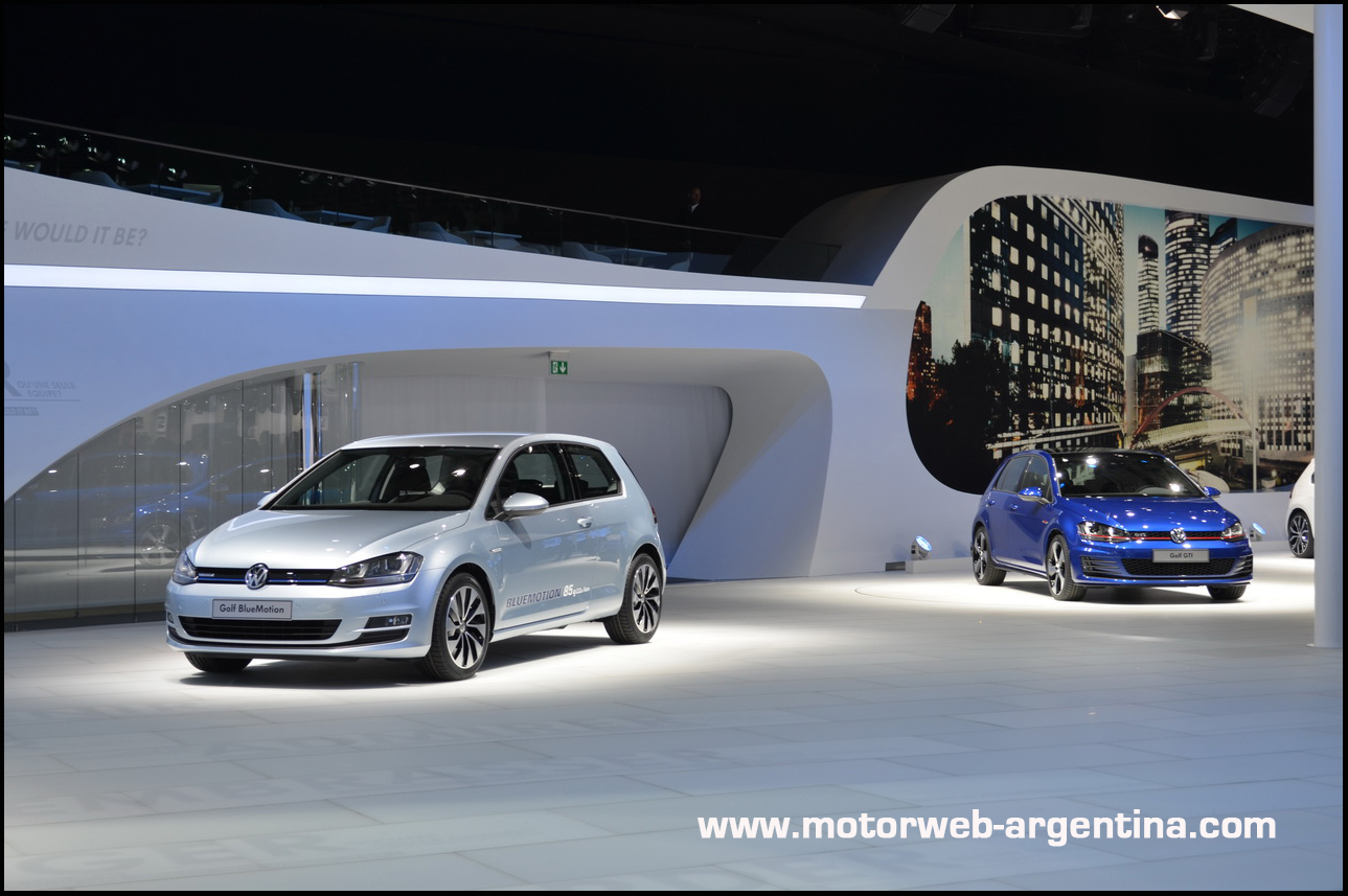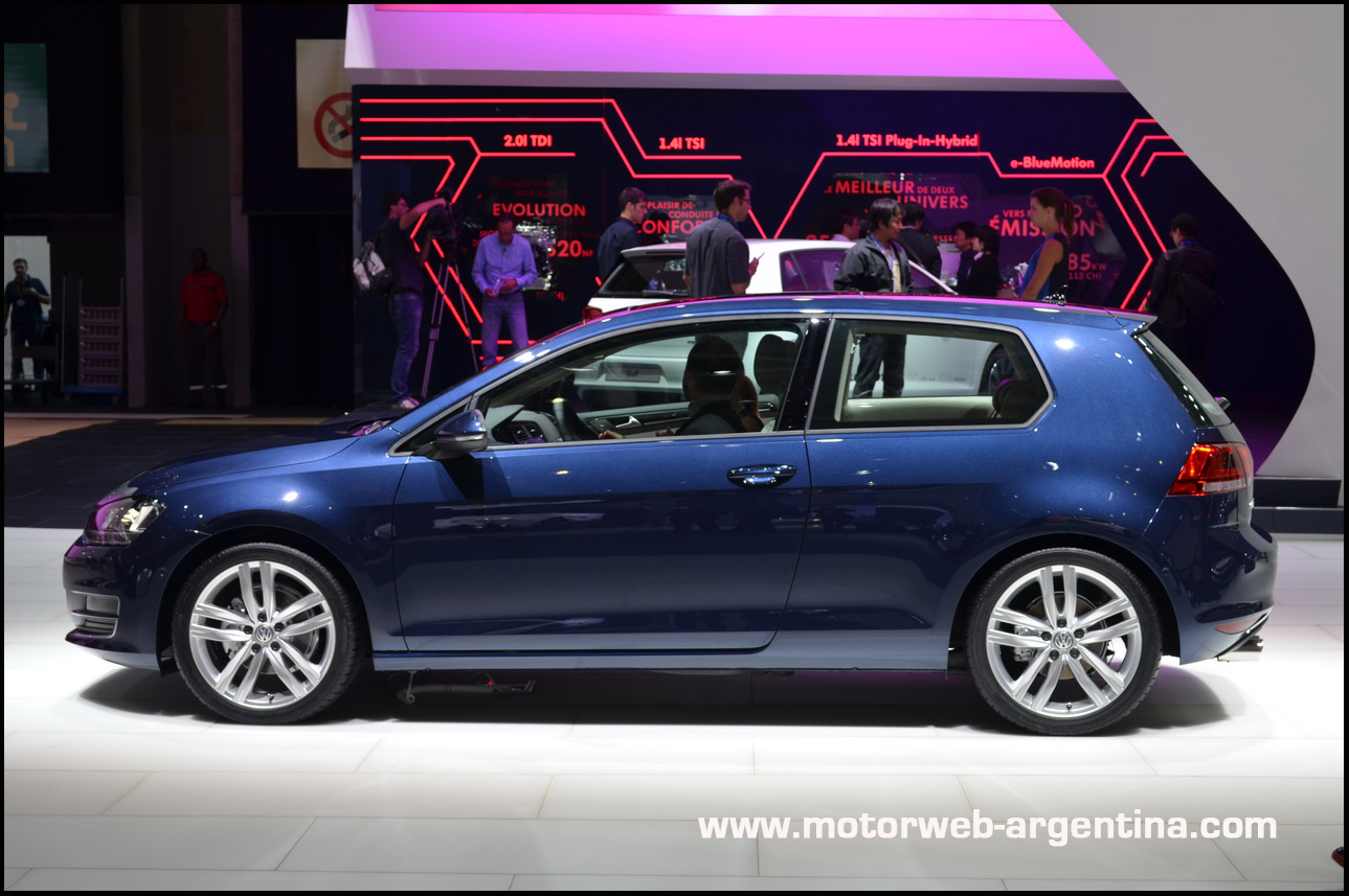 Si bien la nueva generación se había mostrado a la prensa en Berlín el pasado 4 de Septiembre, fue solo en la carrocería de 5 puertas, Ahora en el Salón de París estaban exhibidas ambas carrocerías, con el 3 puertas también en versión definitiva. Además, a modo de “concepto”, es decir, sin revelar que es la versión definitiva (pero ya les digo, lo es) están expuestas por primera vez en el Salón de París las versiones deportivas GTI y Blue Motion (híbrida sobre base TDi).