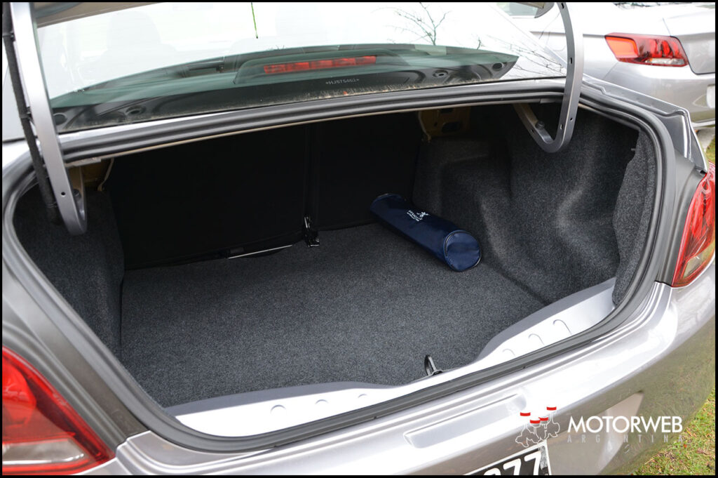 El baúl, entre los más voluminosos del segmento con 506 litros, es extensible con un solo movimiento de los respaldos traseros rebatibles en 1/3-2/3, de serie en toda la gama. Debajo del piso del baul, cuenta con auxilio homogéneo en medida aunque con llanta de chapa.