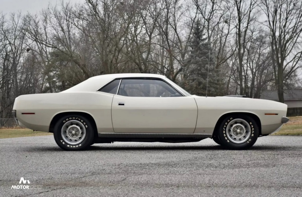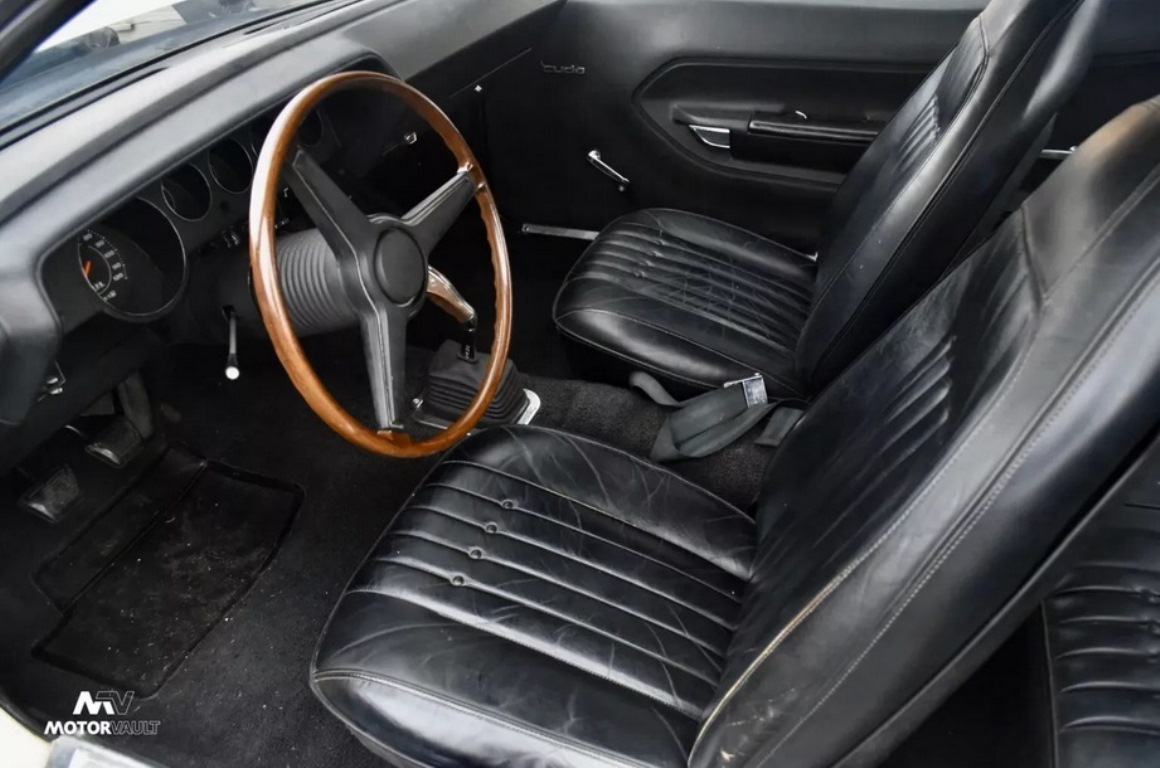 En este caso luce el tono de pintura original, aunque sostienen que fue alguna vez repintado. Sin embargo nunca fue restaurado, por lo que mantiene su tapicería o paneles con los que salió de fábrica. El Cuda se fabricó entre 1964 y 1974, aunque fue la tercera generación lanzada en 1970 la de mayor aceptación.