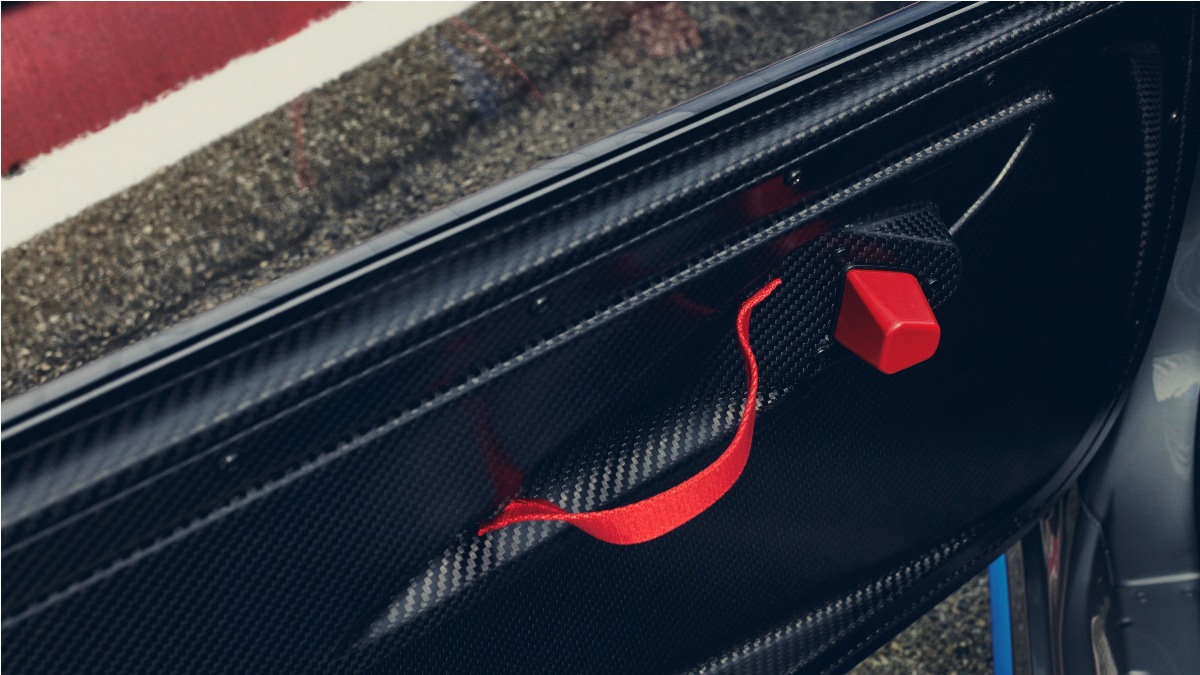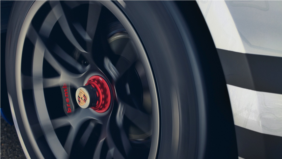 Las puertas, el capó del motor y el alerón trasero están hechos de plástico reforzado con fibra de carbono. Por el contrario, el capó delantero con su distintivo conducto de salida de aire y la entrada de aire central, es un buen ejemplo del uso inteligente de los materiales: como en el 911 Carrera, está hecho de aluminio, lo que reduce los costos de reparación en caso de accidente.