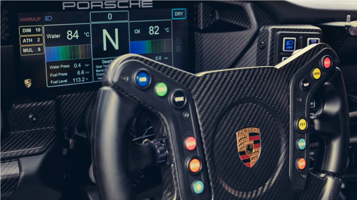 La pantalla central de 10,3 pulgadas, ubicada en el centro del tablero de instrumentos, prioriza la visualización de datos e información relevante para el conductor durante la carrera. Entre ellos las revoluciones del motor, la temperaturas del agua y del aceite o la marcha engranada. A su vez el mismo puede almacenar datos para corroborar con el equipo el funcionamiento del auto en la pista una vez que llega a bóxes.