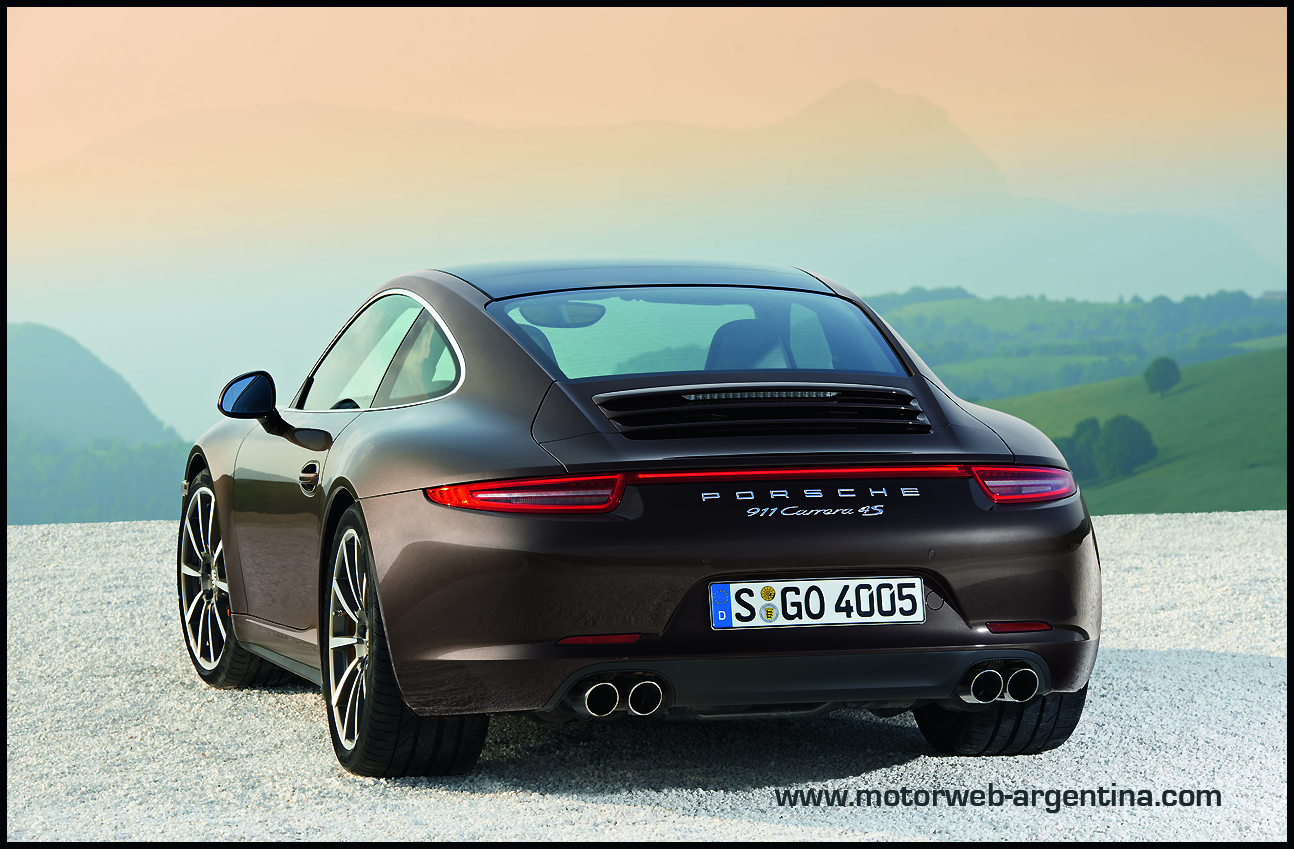 La característica mas distintiva a la vista del 911 Carrera 4 es su posterior, ya que los 22mm de cada lado que mencionábamos se hacen notar en lo ancho del auto. Ademas, se modifica la banda de las ópticas traseras que une ambas extremidades, tomando una nueva forma.