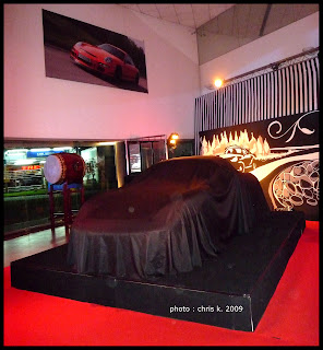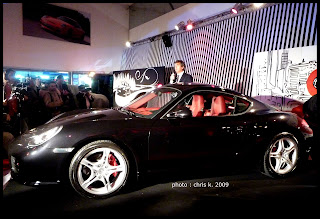 Ya en el interior, con una puesta en escena que incluía a la DJ Mina y de fondo, artistas realizando graffitis con aerosoles en vivo detrás de los dos Porsches, aun cubiertos. Llego el turno de develar las unidades cubiertas y de unas palabras del titular de Porsche en Argentina, el Sr. Hugo Pulenta.