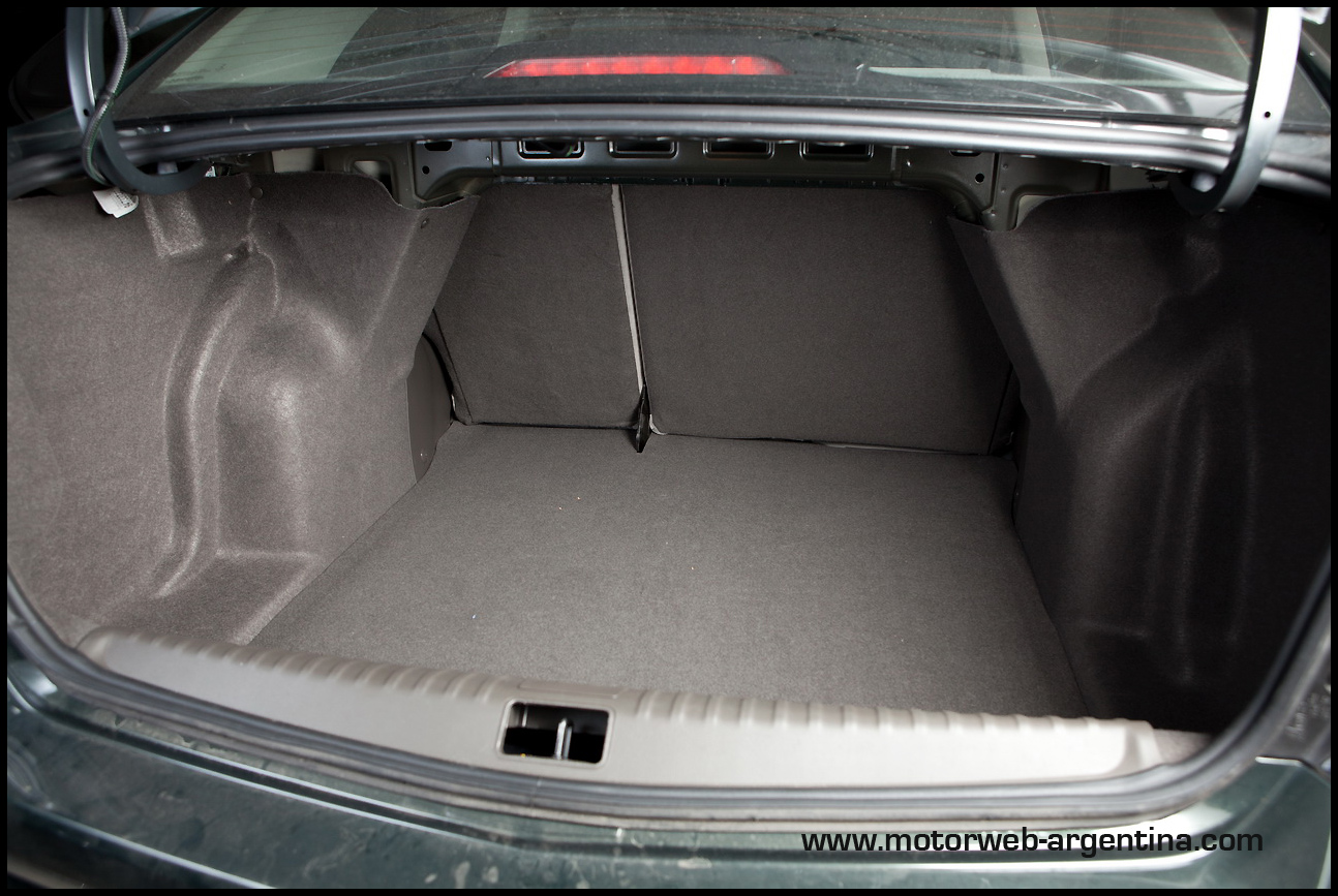 El baúl del Cobalt es otro de sus grandes atributos: son 563 litros de capacidad, a lo que se le puede sumar que se rebate los respaldos de los asientos traseros, ampliando la capacidad de carga, es ENORME. La boca de carga es bien ancha y permite cargarlo cómodamente. Falta un revestimiento de la contratapa del baúl que deja la chapa desnuda y hace que para cerrar el baúl uno meta la mano entre las chapas caladas, dejando bordes filosos al tacto. Merecería un mejor trato con un simple revestimiento, plástico o textil. Tampoco tiene manija exterior para accionarlo de afuera y obligatoriamente se necesitará usar la llave para abrirlo. También en el baúl, encontramos bajo piso al rueda de auxilio. Llamativamente es de tipo temporal, mucho mas pequeña que las otras 4 instaladas. Espacio en el alojamiento de rueda hay, con lo cual es una clara elección de tipo económica.