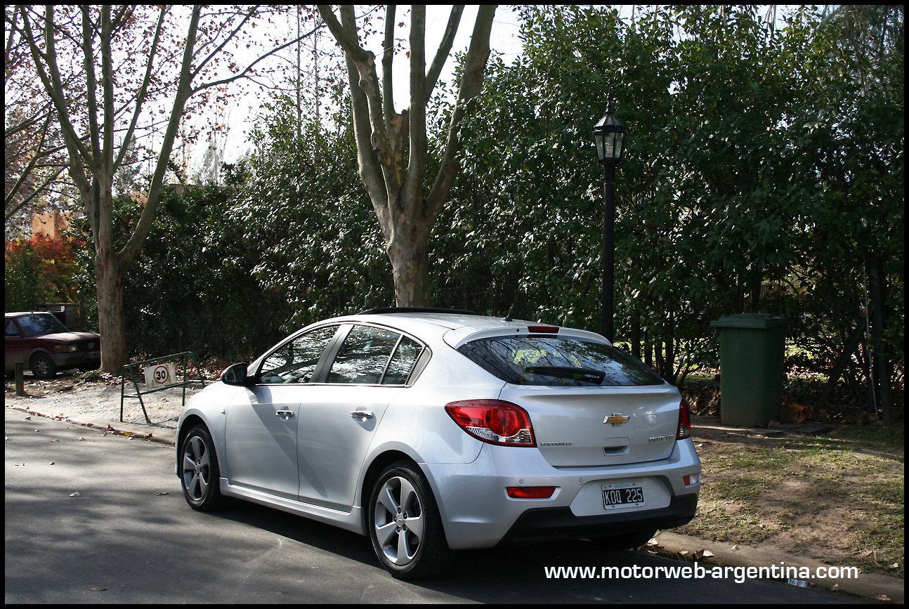 De aspecto robusto y bien plantado, el Cruze hatchback solo difiere del sedan de la puerta de atrás hacia la cola. Su aspecto es bien solido, deportivo y hasta me atrevo a decir que es una pena que no haya disponible una versión más radical con un motor de 200cv -o mas- que seguramente tendría una optima recepción en el mercado. El chasis del auto claramente esta para más que los 141cv del 1.8 naftero. Sus líneas son modernas, agresivas e inspiran carácter, siendo imposible confundirlo con otro vehículo.