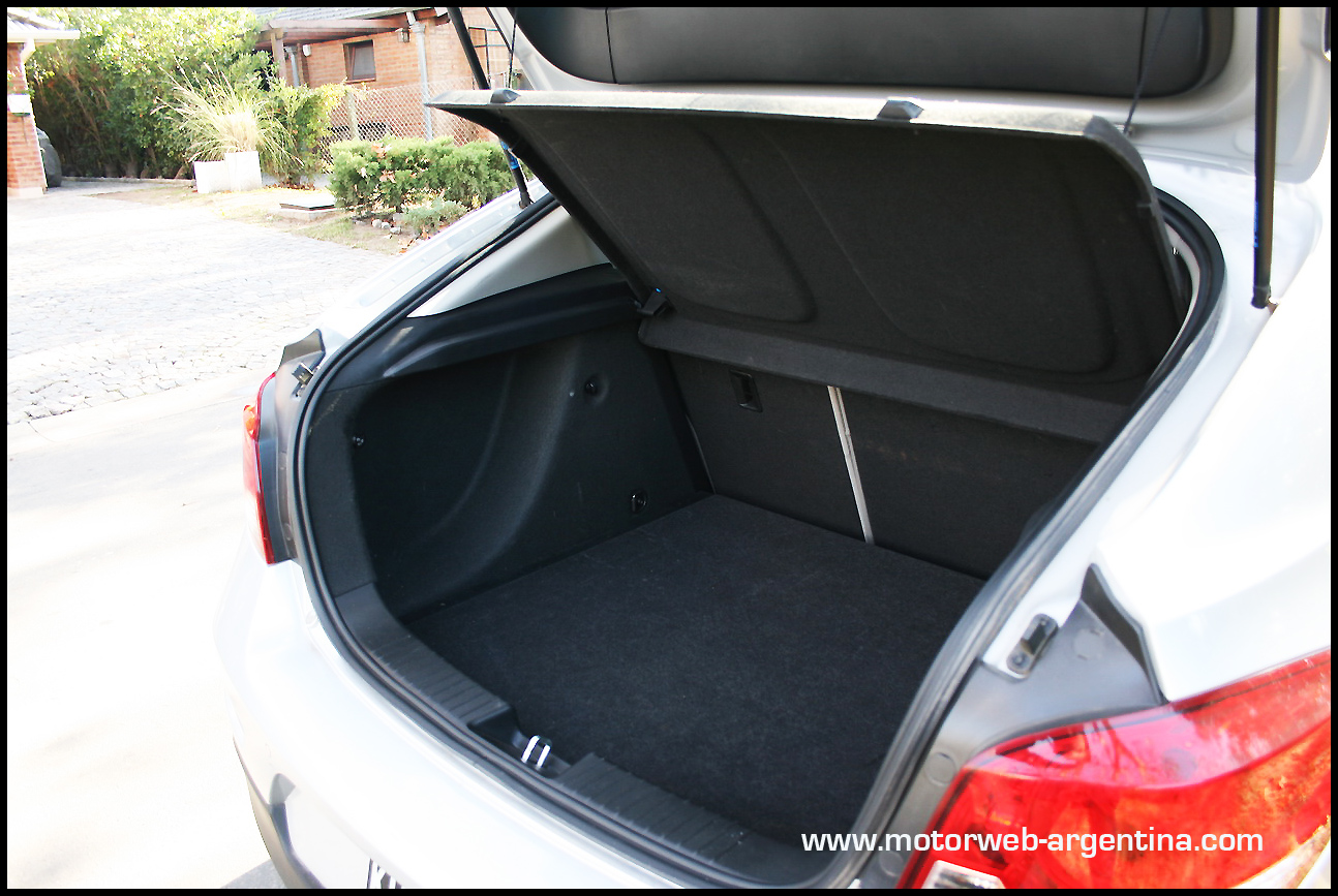 Cambia mucho la forma del baúl, que en el HB es más bajo, reduciendo su capacidad a 413 litros. No es mucho lo que se pierde en volumen, pero se gana en practicidad de carga, ya el enorme portón trasero y su luneta desmontable, sumado a los respaldos abatibles propician posibilidades de cargo mayores a las del tradicional baúl, aumentando la capacidad. El baúl, se lo ve un poco mejor terminado que el del sedan, ya que su modo de apertura deja todo el interior del mismo a la vista, sin puntos ocultos, obligando a un completo y prolijo revestimiento del compartimiento. La rueda de auxilio está alojada bajo un piso alfombrado removible de buena calidad y sobre todo, de buen espesor. Es del mismo tamaño que las otras cuatro ruedas, pero tiene llanta de chapa. Hubiéramos preferido una quinta rueda homogénea con el resto.