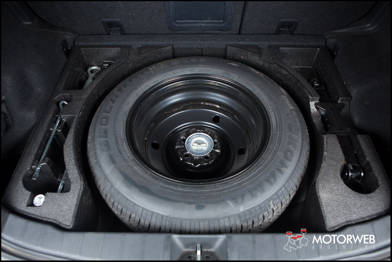 El baúl tiene una capacidad de 416 litros y debajo del piso, aloja a la rueda de auxilio, que si bien no es homogénea con las llantas de aleación de 18 del auto, es de tipo convencional de chapa negra y nos permitirá seguir un largo sin imponer una velocidad máxima, como lo haría una rueda temporal.