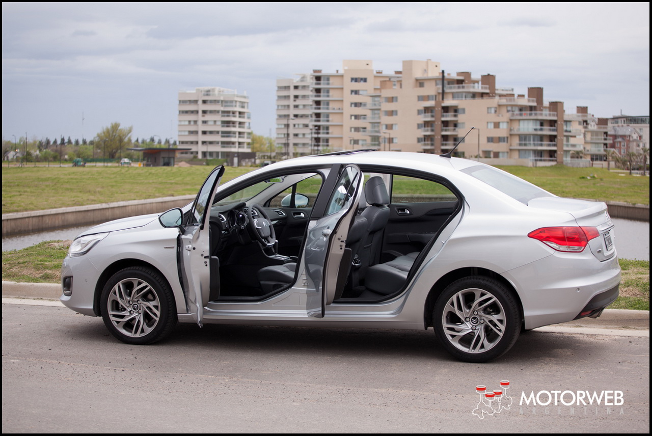 Logra, a nuestro entender, plasmar el espíritu «diferente» que es característico de la marca francesa. Durante su lanzamiento en Mendoza, el Gerente de Diseño y Creación de América Latina, el brasileño Daniel Nozaki, explicó los trazos de diseño que el C4 Lounge rescata de la historia reciente de Citroën, inspirándose en los modelos CX, SM y XM, logrando una silueta de lineas precisas y curvas, generando una carrocería de aspecto muy dinámico y musculoso. El resultado es un sedan muy agradable, con superficies complejas y muy «esculpido» en el punto justo. Bien plantado con llantas de 17 pulgadas y neumáticos 225/45, el C4 solo adolece de un marcado despeje al suelo, que si bien favorece el confort de marcha para nuestra empobrecida red vial, genera pasarruedas con demasiado aire por sobre las ruedas. A nosotros nos encanta el detalle de la luneta trasera cóncava, guiño histórico al diseño de la luneta trasera del fabuloso Citroën CX de finales de los ’70s, que luego retomaría a inicios del siglo XXI el enorme C6.