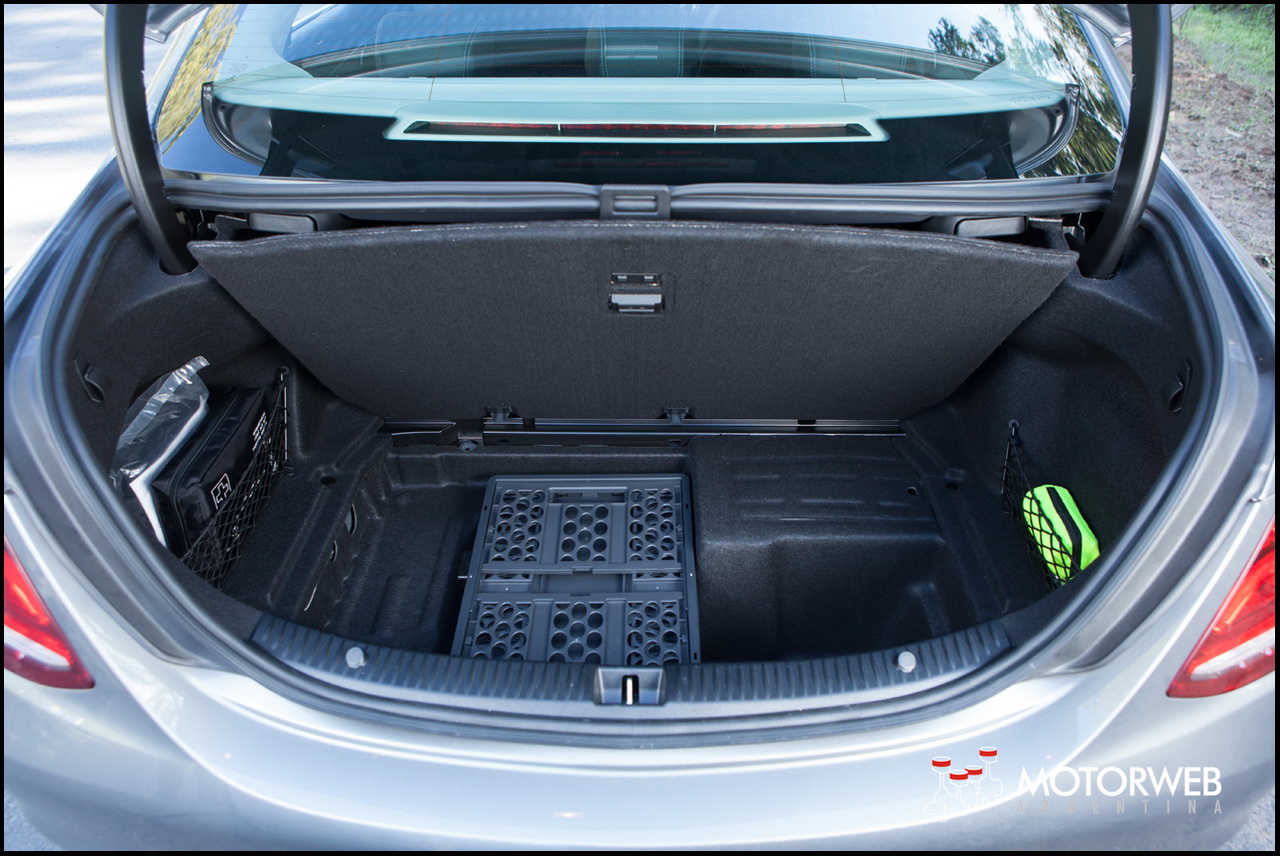 El baúl del Mercedes Clase C es apenas mas amplio que en la anterior generacion. Tiene 480 litros de capacidad y prácticamente lo mismo que sus clásicos competidores alemanes. Esta muy bien terminado, completamente revestido, y pese a adoptar bisagras convencionales para la tapa, el recorrido de estas está carenado dentro de la tapicería lateral, de modo de no chocar en su recorrido con nada que podamos tener en el baúl. Ademas, los respaldos posteriores pueden ser rebatidos en la conveniente proporción 40/20/40. Es decir que la parte central de baja completamente para poder pasar objetos largos, manteniendo las dos plazas laterales posteriores sin cambios.