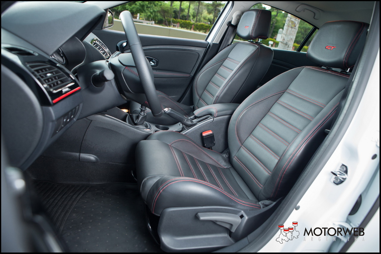 Entre las críticas que podemos hacerle al Fluence GT2, podemos enumerar las estéticas y las funcionales. Las estéticas, mas subjetivas, tienen que ver con algún tratamiento extra del puesto de conducir, que básicamente se demuestra deportivo por los tonos oscuros, las costuras rojas, y algunos detalles más. Pero para nosotros falta más carácter en el cuadro de relojes, y un volante un poco más diferente al del resto de la gama. Si hablamos de las butacas, los laterales son muy marcados, pero carecen de sustento lumbar y merecerían regularse en este aspecto.