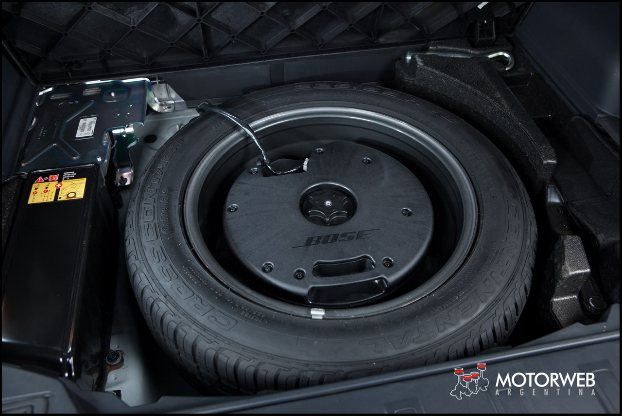 El baúl es de una capacidad normal para su segmento, con 450 litros de capacidad que se pueden ampliar rebatiendo asientos. Todo el baúl está impecablemente presentado, no solo del piso hacia arriba, si no también por debajo, donde aloja el auxilio (que lamentablemente no es homogéneo con el resto pero si de la misma medida). Como curiosidad, el portón trasero se abre en dos partes, una hacia arriba desde la luneta, y la parte inferior, que hace de plano de apoyo y que puede soportar hasta 200 kilos de peso.