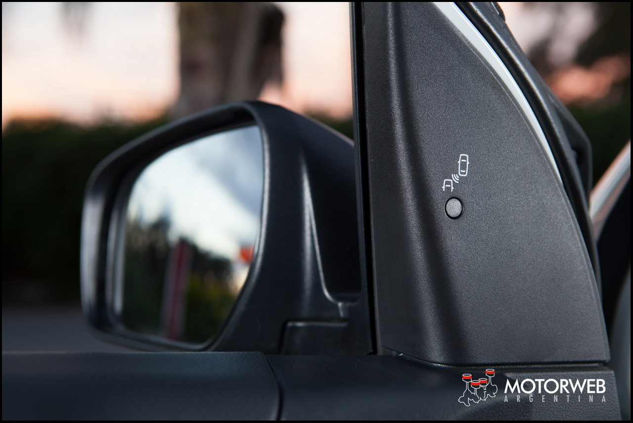 Tiene detección de «angulo muerto», y mediante unos leds que titilan en el lado interior de la base de los retrovisores laterales, el auto nos avisa que hay otro vehículo próximo y plausible de caer en esa franja de espacio llamado «angulo muerto» para la vista del conductor. Solo podríamos pedir un séptimo airbag para las rodillas del conductor, pero como habrán notado, todo el equipamiento de confort y seguridad es realmente muy completo.