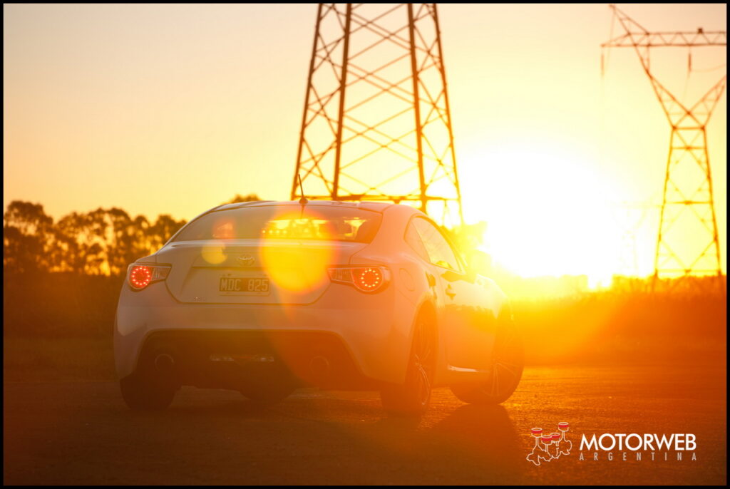 Cuesta entrar y sentarse en la butaca, bien bajita y cercana al piso. No es casual, si no algo buscado a propósito y no solo por su perfil, si no porque uno de los puntos mas fuertes de este Toyota 86 es su baricentro bajo, ítem por el cual también se eligió un motor Bóxer, de contenida silueta en altura, para poder mantener todas las masas del auto lo mas cercanas al pavimento posible y optimizar así la dinámica. La cola del auto muestra un gran difusor inferior en color negro, que congrega las dobles salidas de escape, una a cada lado, y un conjunto óptico inferior, con antinieblas y luces de marcha atrás en un estilo que evoca a los autos de carrera.