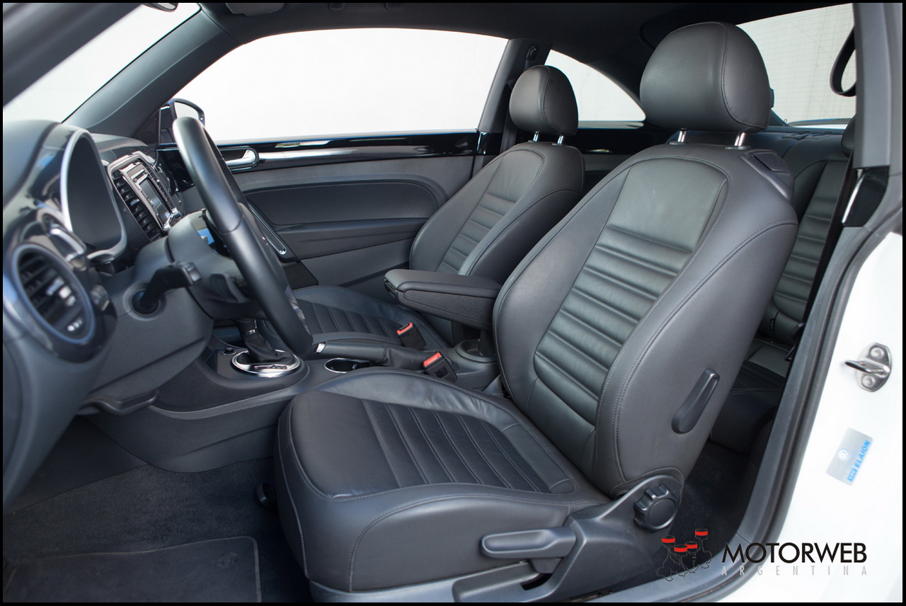 Cómoda posición de manejo y butacas de buena sujeción se combinan con un volante de diámetro justo que alojan las levas de cambios, como para completar el espíritu deportivo de esta versión. Importado desde México –se ensambla allí para todo el mundo- el Beetle se presenta como una buena opción para quienes quieren llevarse un espíritu diferente respecto a la otra coupé que vende Volkswagen en Argentina, el Scirocco. Si bien ambos tienen las dos mismas propuestas de equipamiento mecánico, El Beetle apela a otra clase de sentimientos en el publico y seguramente captará a gente que busca algo distinto.
