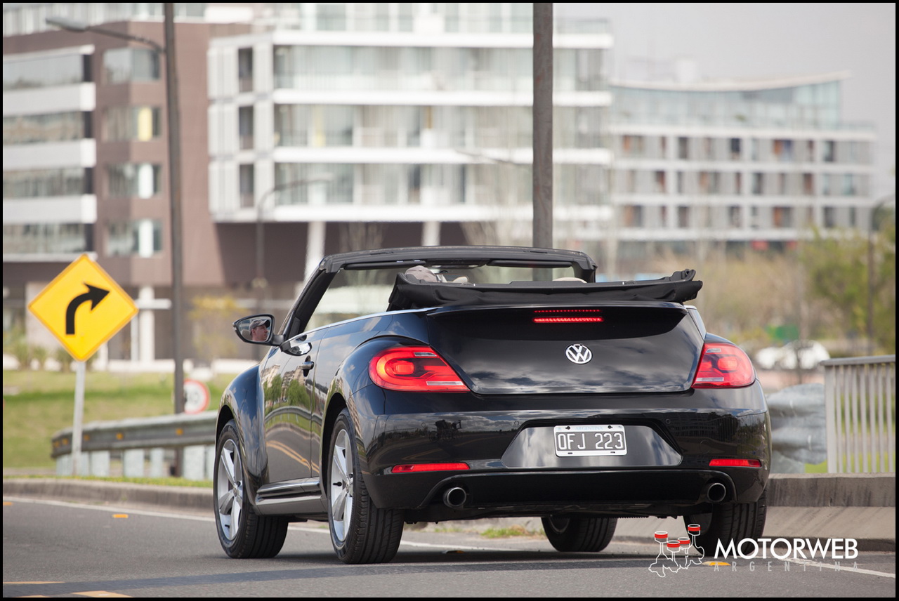 Con la capota y los vidrios cerrados, la sensación es más contenida y nos da la impresión de menor distracción, si es que nos empeñamos en una conducción veloz. Pero, si nos encontramos con una calzada ondulada nos daremos cuenta que al auto le falta el techo metalizo como contrapunto estructural en su rigidez. Si bien se lo nota solido y sin vicios en el asfalto sano, cuando el piso se torna irregular, este Beetle, como cualquier otro descapotable de 4 plazas, nos recuerda su condición de auto abierto. En líneas generales, buena aislación de la capota cuando esta cerrada, y aunque si bien no es tan hermético como un auto de casco enterizo, nos pareció mejor que otros convertibles que manejamos últimamente, tanto a nivel ruidos como a nivel temperatura.