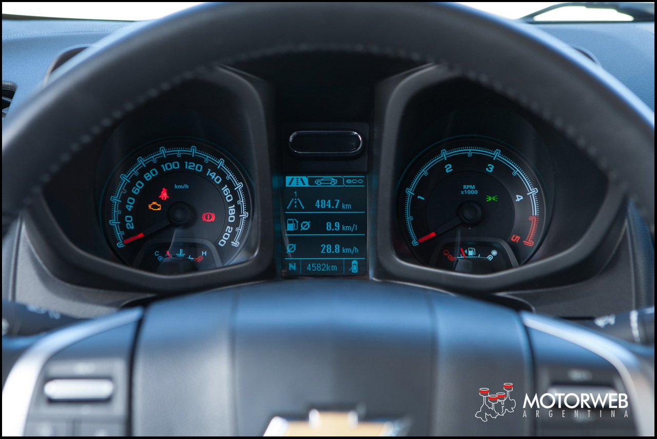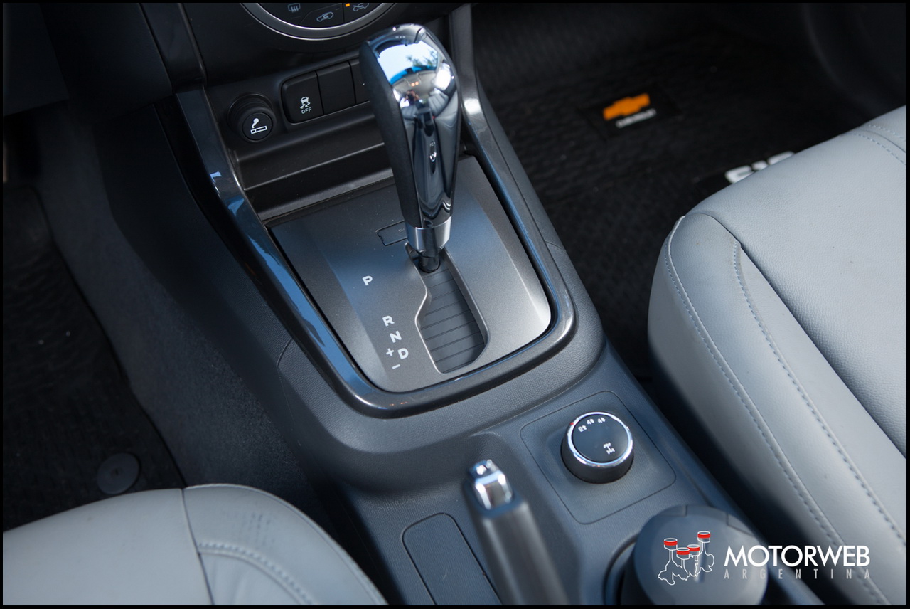 No nos gustan las selectoras de cambios con superficies cromadas. En pleno verano se calientan hasta la molestia bajo el rayo del sol y si bien se acciona poco al ser automática, para nosotros seria mucho mas lógico otro tipo de material. El cuadro de relojes es de lectura clara y simple, y está conformado por dos grandes esferas con viseras voluminosas, que remiten a diseños clásicos de la marca de décadas atrás y que ahora también han retomado otros modelos, como el Camaro. En el centro, la mencionada computadora termina de proveernos todos los datos del vehículo.