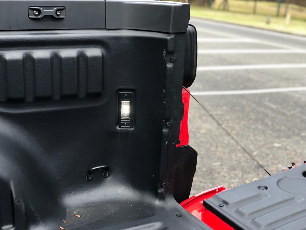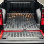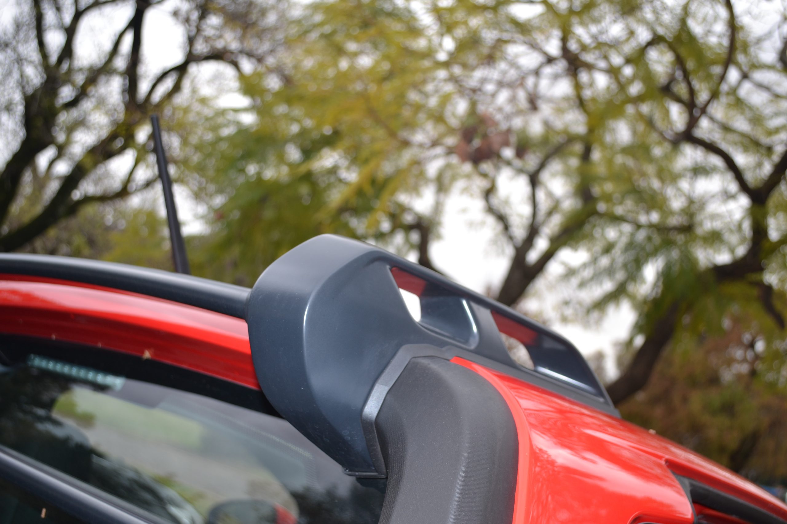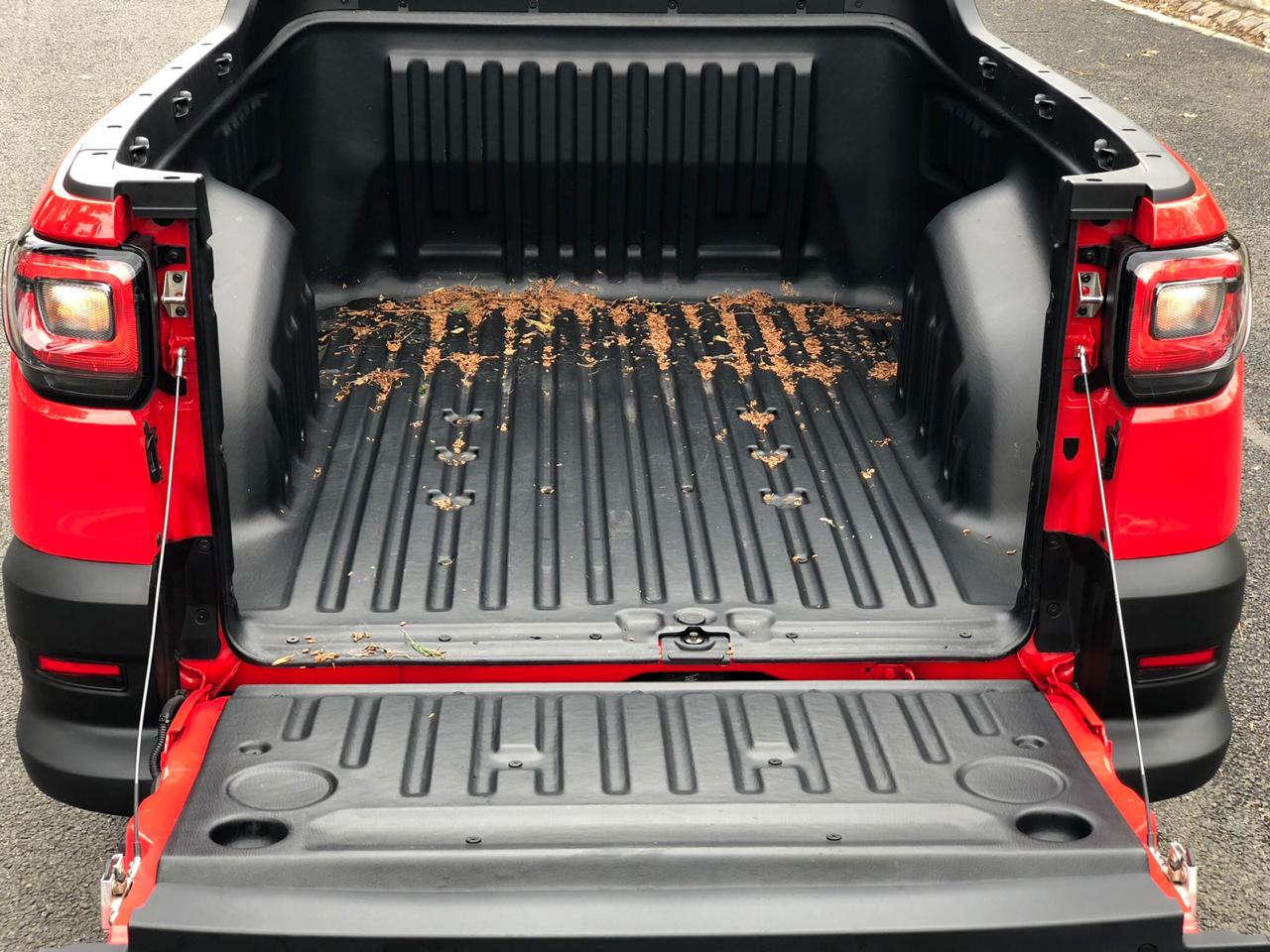 Además, como buena pick-up destinada a un uso laboral, tiene protector metálico de luneta, barra de techo que permite cargar elementos de mayor largo y atarlos, ganchos internos, luz en el compartimiento de carga y portón con cerradura. El mismo está asistido mediante una barra de torsión que reduce la fuerza que hay que hacer al intentar cerrarlo. El paragolpes trasero es de plástico, pero su interior cuenta con un alma de acero, que le otorga mayor rigidez, e incluso posibilita pararse por sobre el mismo.
