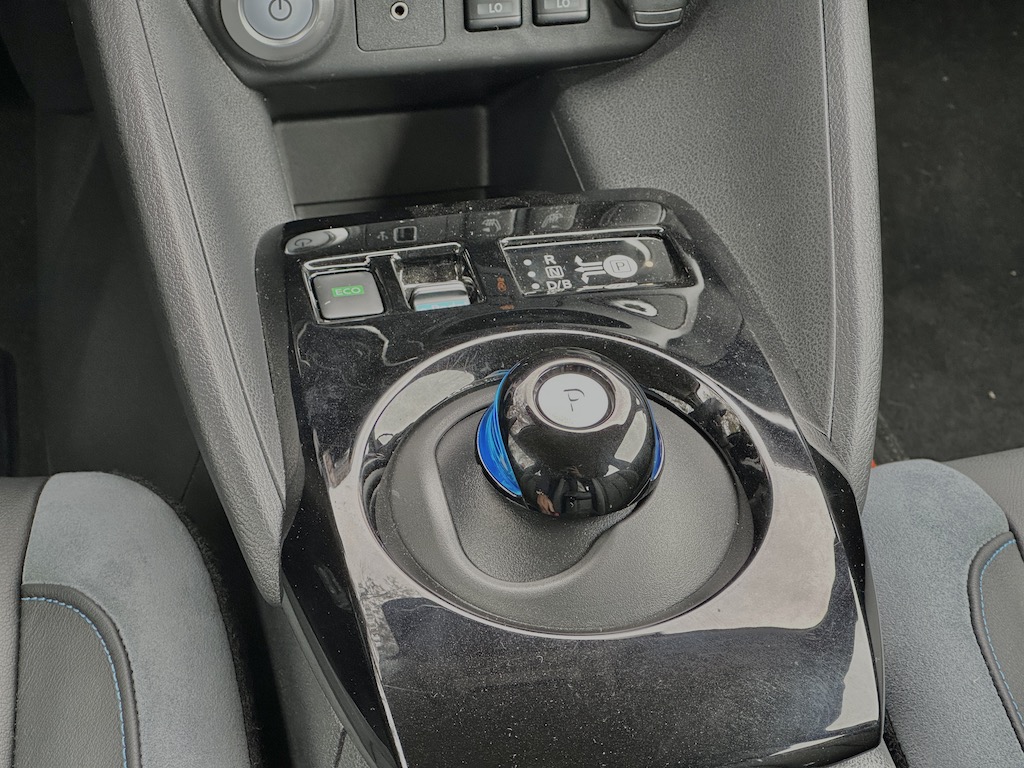 Posee un joystick con solo 3 posiciones: adelante, atrás y punto muerto. Como es habitual en el modelo, el Leaf mantiene la tecnología conocida como e-Pedal, a través de la cual el conductor puede acelerar y frenar con un único movimiento, sin la necesidad de usar el pedal de freno. Esto optimiza la capacidad de reacción y aumenta el rango de autonomía. Pero requiere cierta práctica porque modifica la manera de usar el pie. Es como una tercera categoría: vehículo manual (acelerador, embrague y freno), automático (acelerador y freno) y este (solo acelerador).